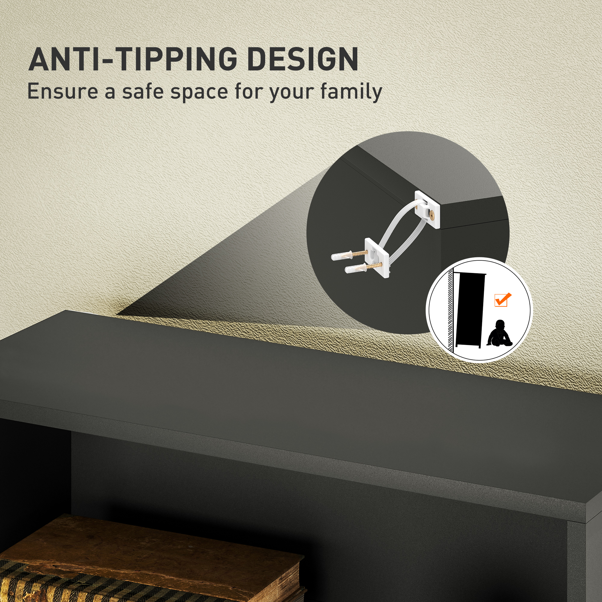 - Anti tipping kit to fix the shelving unit to a wall for safety