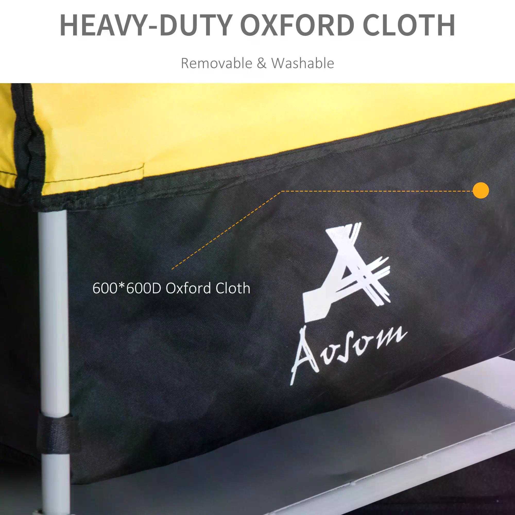 With this bicycle trailer from HOMCOM, the durable bag will keep all the contents safe and protected, with its bright yellow top making it visible to everyone. The bike trolley's solid steel base attaches to your bike quickly and gives the carry bag a balanced and safe platform. Features two wheels for smooth movement, with reflectors for safety in the dark. Both wheels are detachable so that you can easily pack and store this trailer. Attach our camping trailer to your bike back and go!