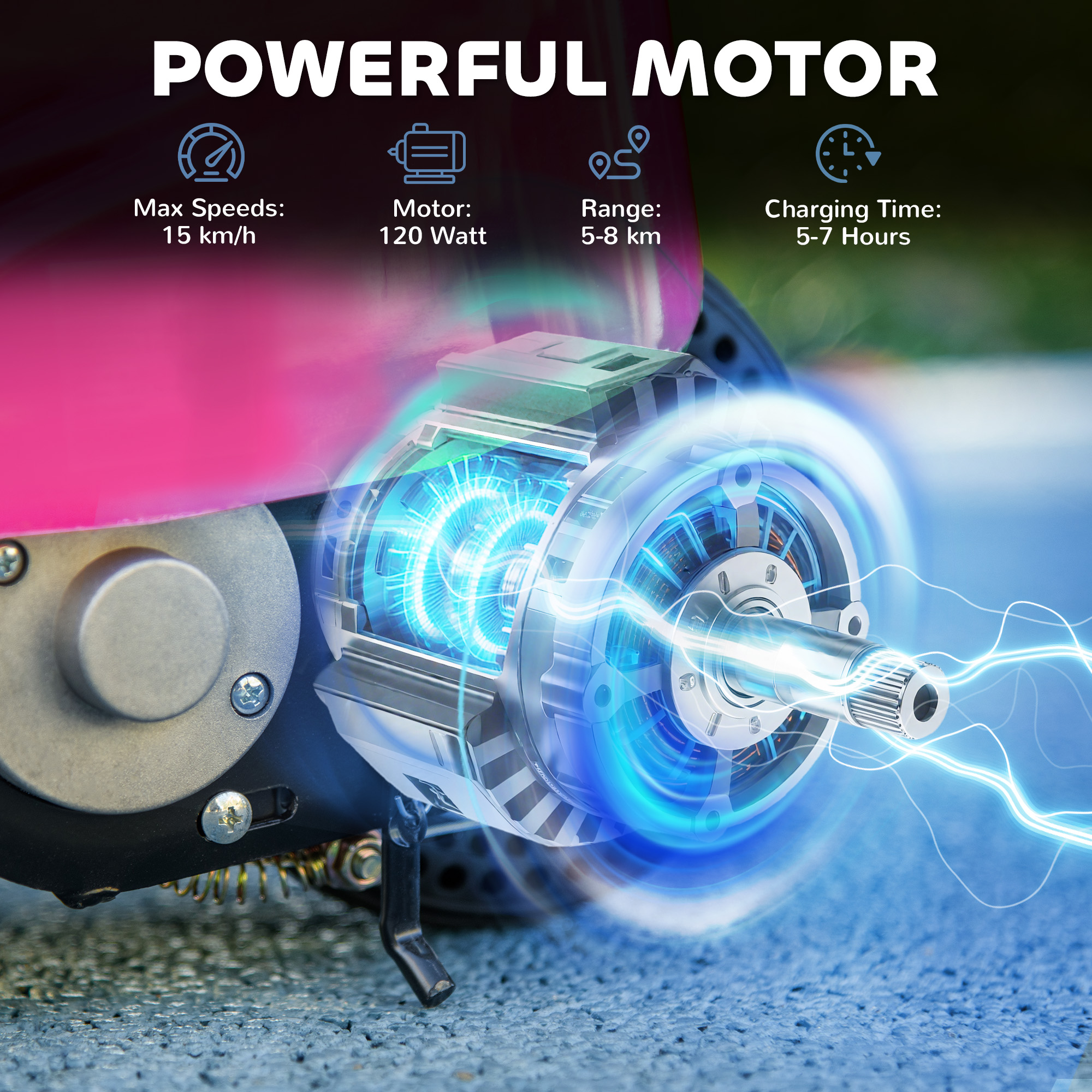 Ride in style, thanks to this HOMCOM kids ride on powered scooter, making outdoors super exciting. After charging for 5-7 hours, kids can travel 5-8km, with a maximum speed of 15km/h. Features an all-steel frame and fork – a stable ride that stands up to rugged use. A bell to warn others nearby, whilst the brakes bring the foldable scooter to a swift stop, promoting safe riding. Embark on exciting adventures, elevate fun and create cherished childhood memories.