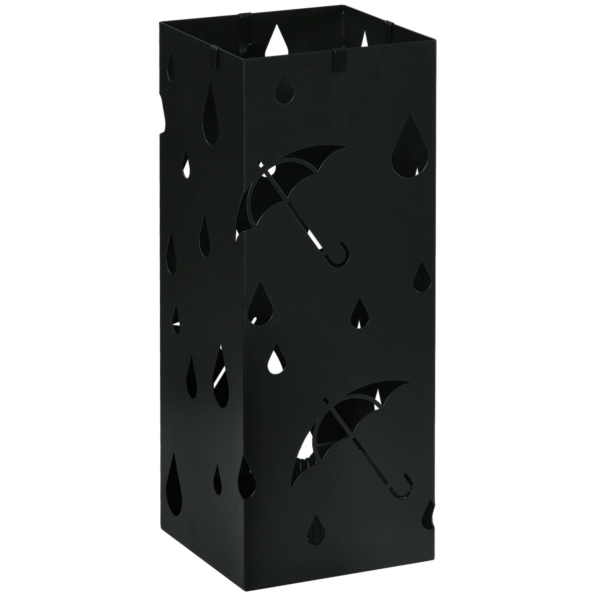 Rainy days mean umbrellas. And umbrellas can result in wet floors. Merging style and function, this HOMCOM umbrella holder for hallway gives umbrellas their own storage place, whilst bringing in a touch of style. Made from galvanised steel, this umbrella stand is strong and resistant to rusting. The 15.5 x 15.5cm size holds two large umbrellas, with four hooks included for smaller brollies. Comes with a removable bottom tray to easily remove any liquid.