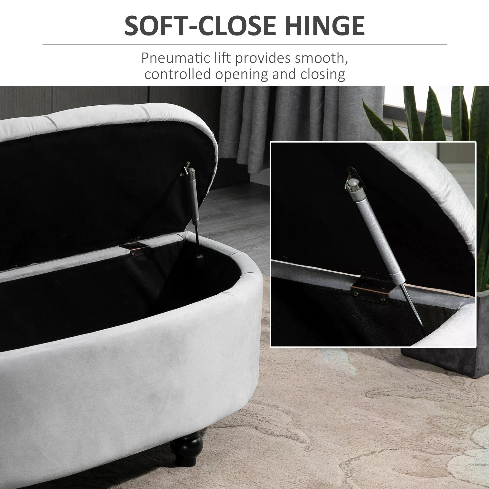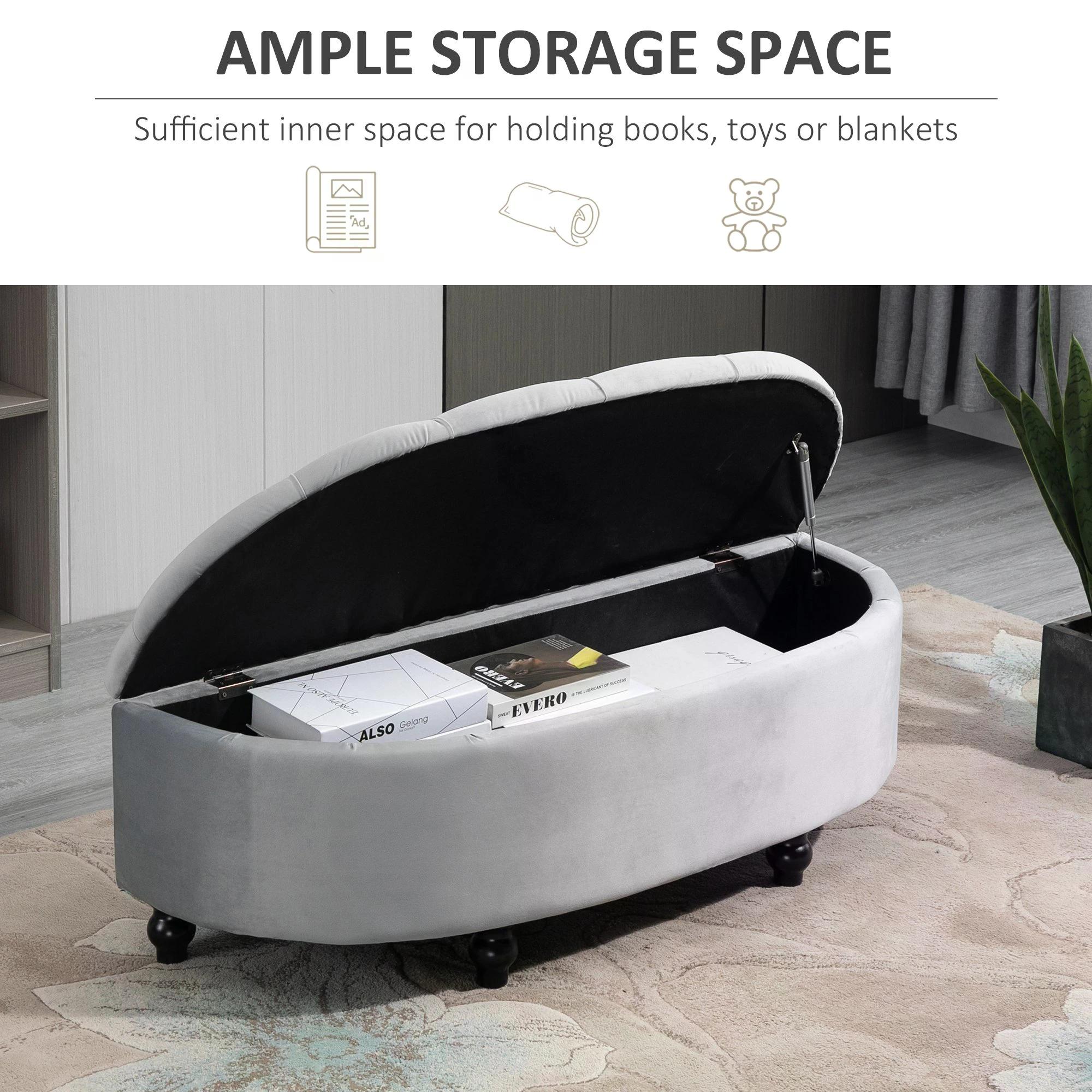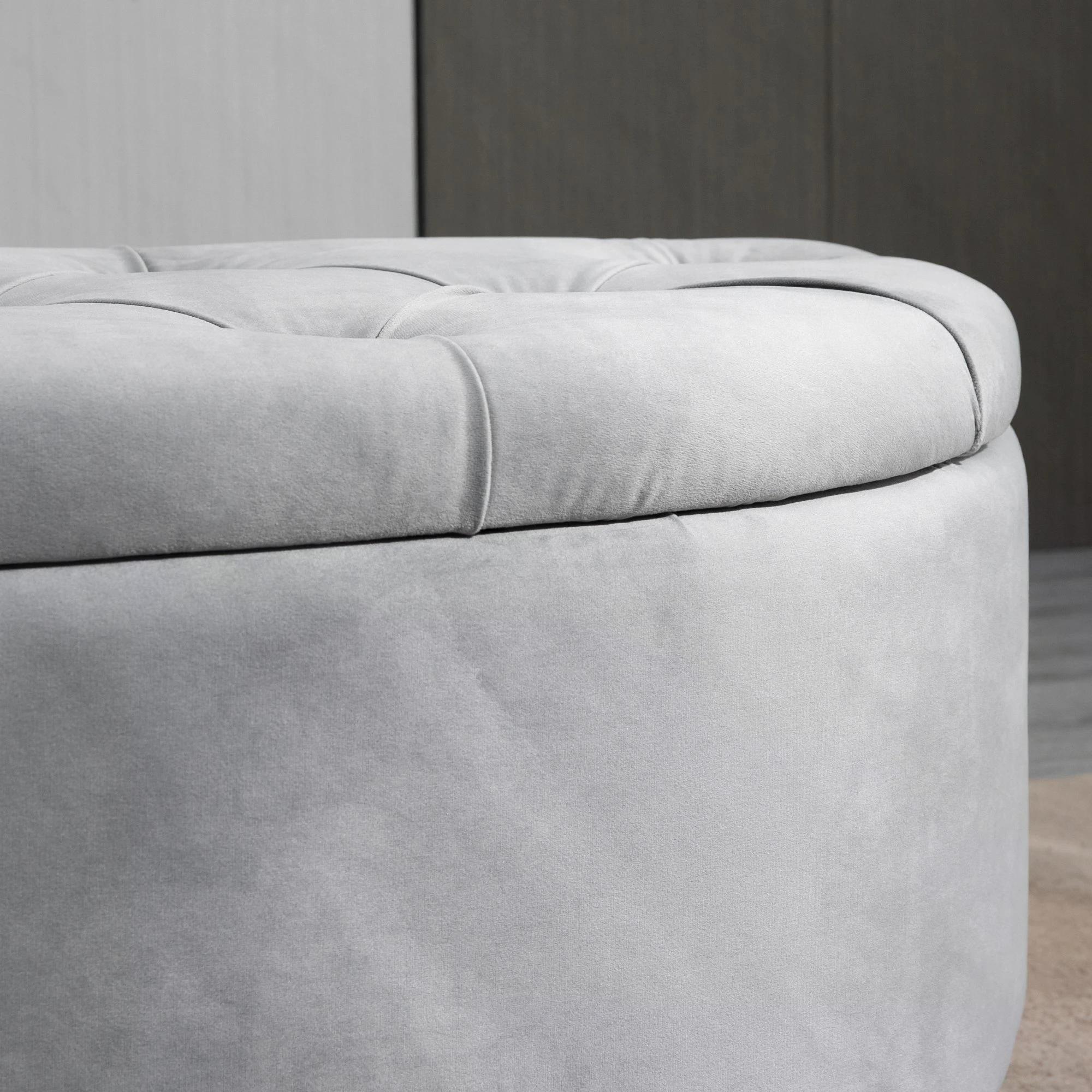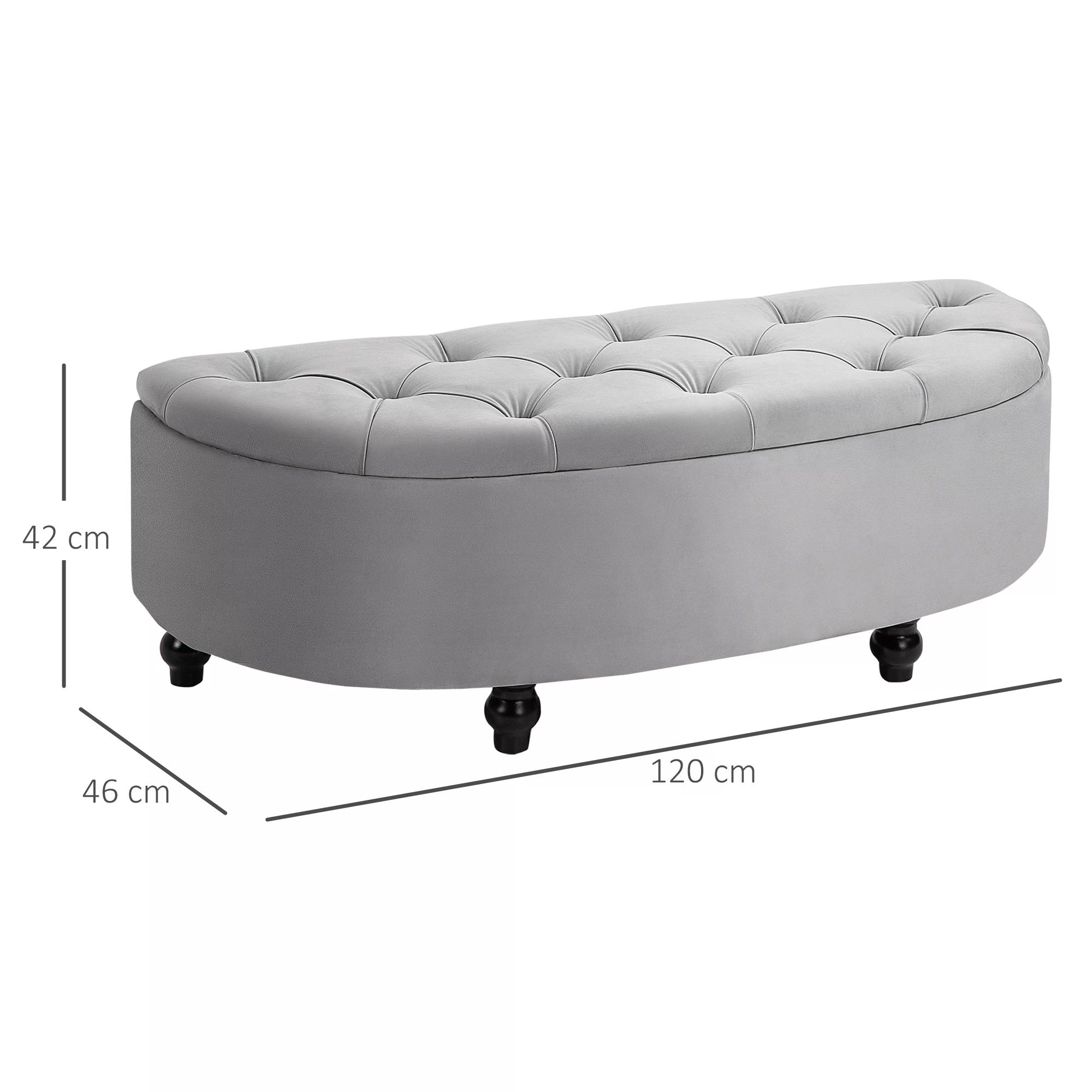 Create an instant focal point in your house with this french-inspired HOMCOM storage ottoman. Lush velvet-feel upholstery, carved wooden legs and button tufting add extra beauty to the design. The cushioned top lid allows you to sit comfortably when temporarily needed, finished with a 111.5 x 37.5cm storage space.