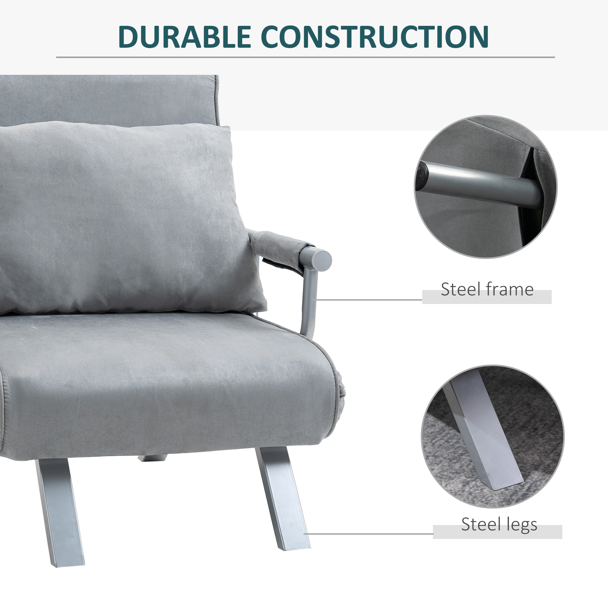 Switch from sitting to sleeping in an instant, thanks to this convertible chair from HOMCOM. It effortlessly combines comfort and style for a piece which looks just as good as it feels. Using steel for the frame, the structure is solid and tough, and features a five-level back to adjust to a position best for you. Filled with thick foam padding, it's wrapped in suedette upholstery which is beautifully soft to the touch. It comes complete with armrests, slanted legs for stability and a large pillow for extra comfort and support. Now your guests will always have somewhere cosy to sleep when they come over for the night.