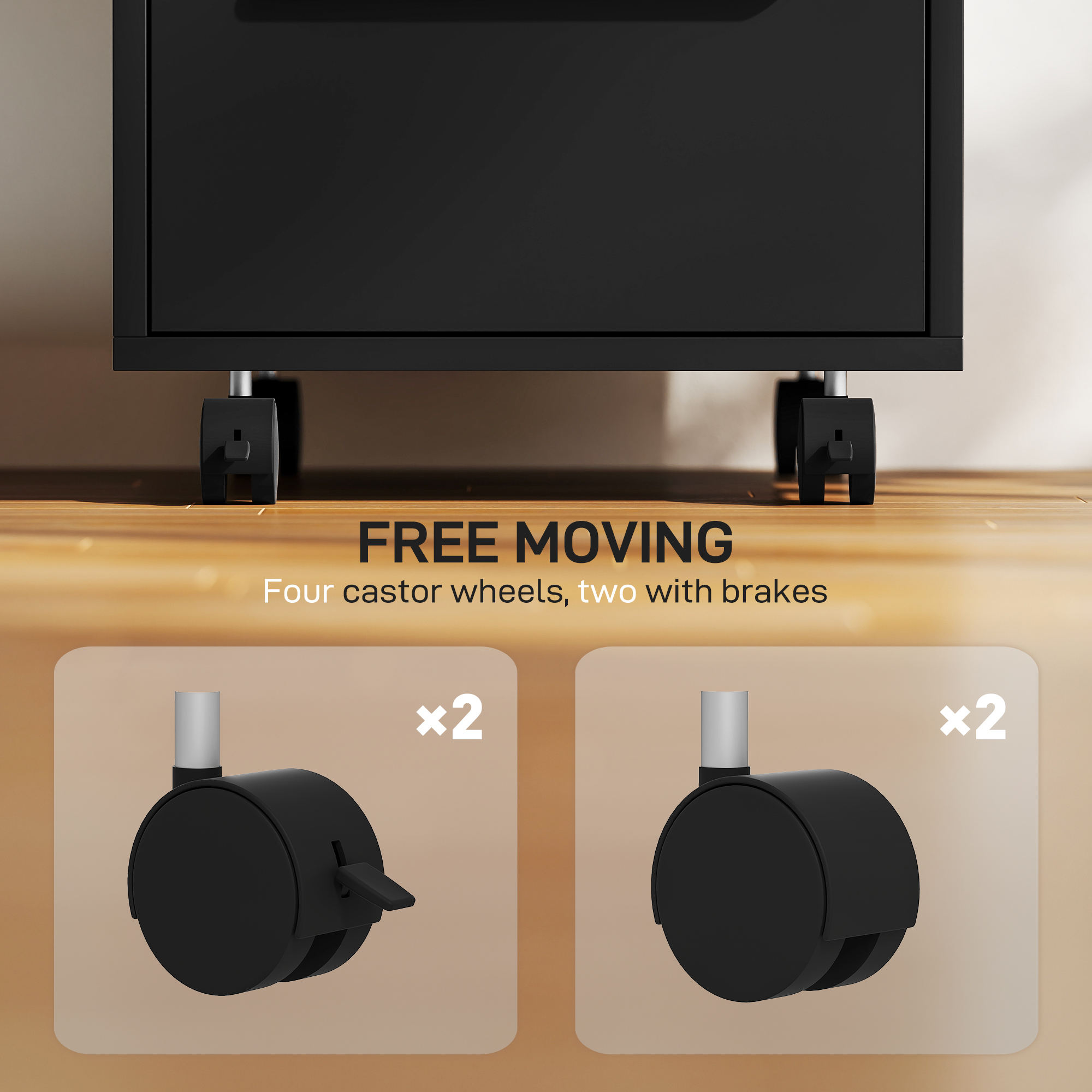 Organise your home office with this three-drawer filing cabinet. The central locking system keeps documents safe and secure: it secures all the drawers at once. The three drawers and offer lots of storage for files, stationary and more. It is a flexible storage solution for home office, study, bedroom or living room.