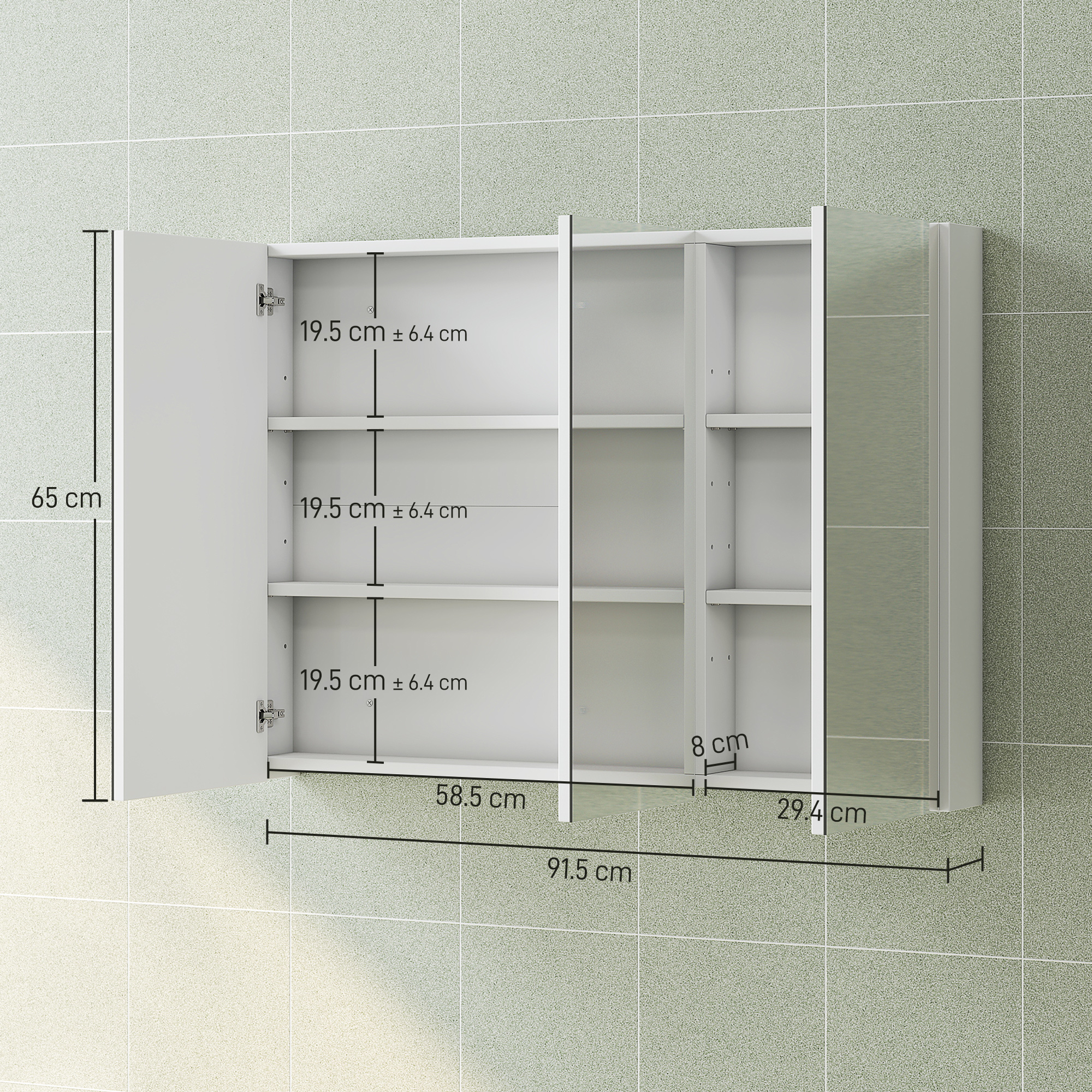 All the reflection and storage comes with this HOMCOM bathroom wall cabinet. It showcases three mirrored doors so you can see yourself properly when getting ready. Inside there are six inner shelves - plenty of room for toiletries, cleaning products and small accessories; four shelves are adjustable to fit in smaller and larger items as needed. Simply fix to the wall and go!