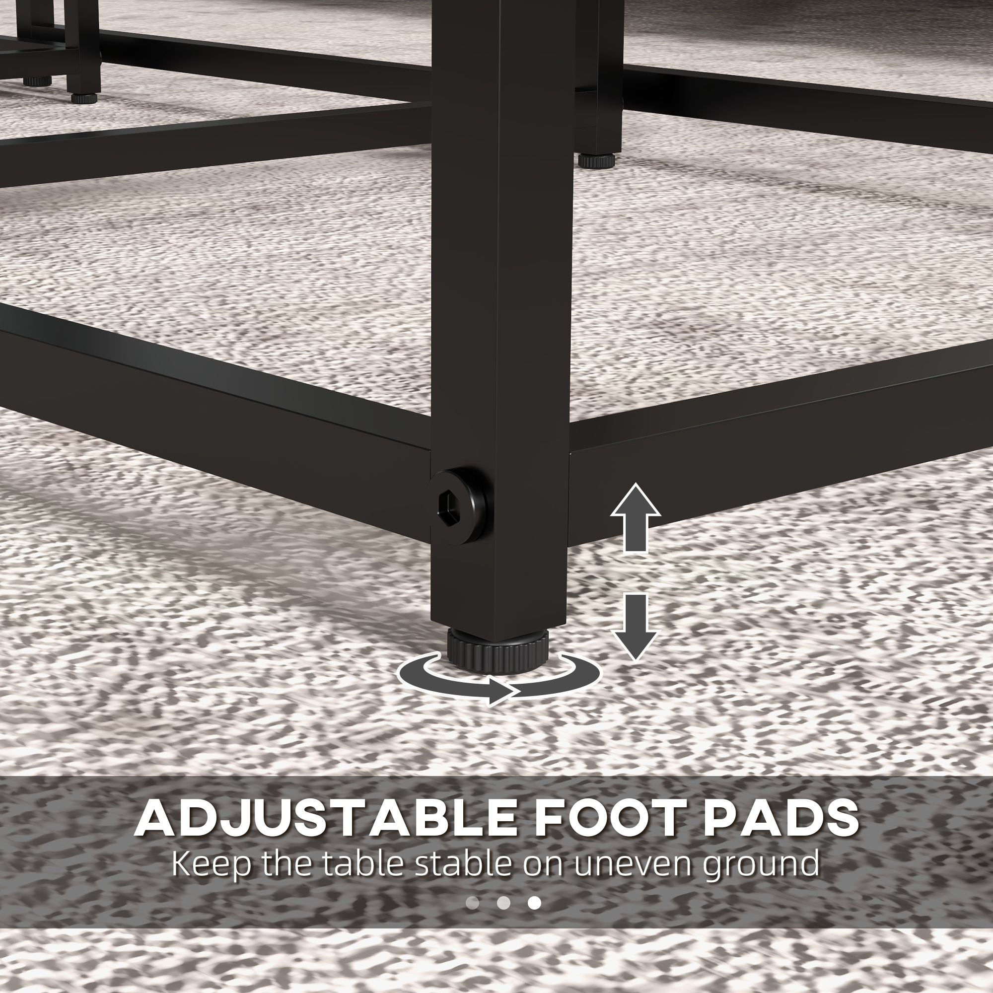 - Adjustable foot pads keep the tables stable on uneven grounds