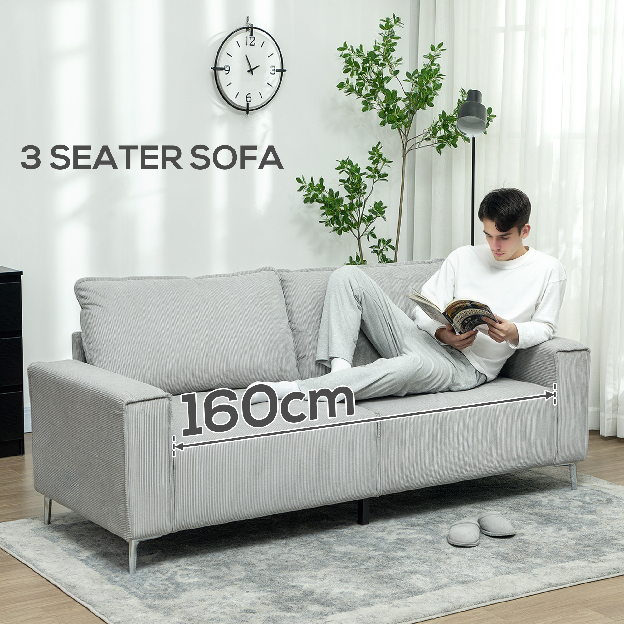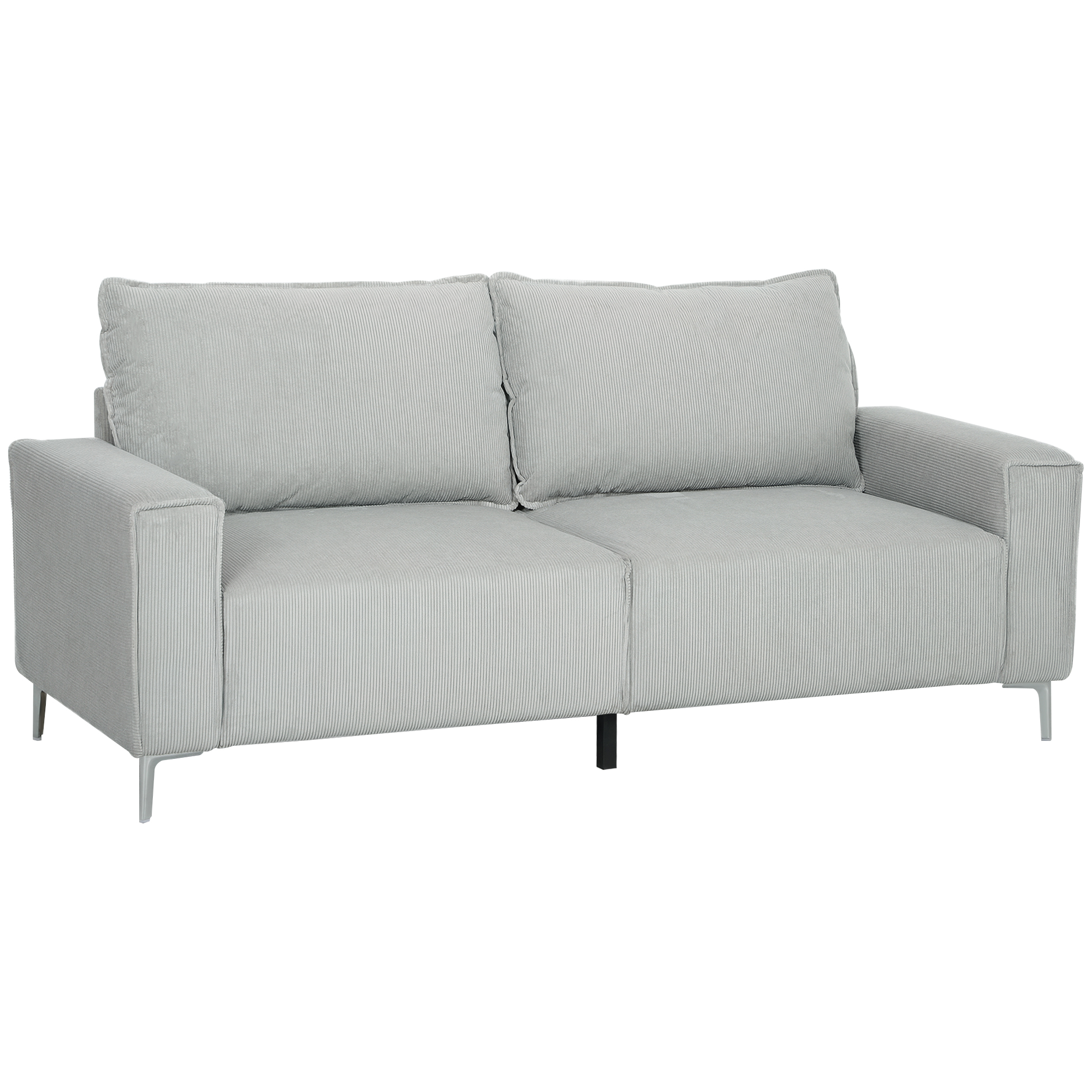 An on-trend modern addition for your home, with this HOMCOM three-seater sofa. Filled with comfortable high-density foam and shape-retaining S-springs, it's wrapped in cool corduroy upholstery. Two back pillows included for extra comfort as you relax into this cosy settee, complete with steel legs for strong support.