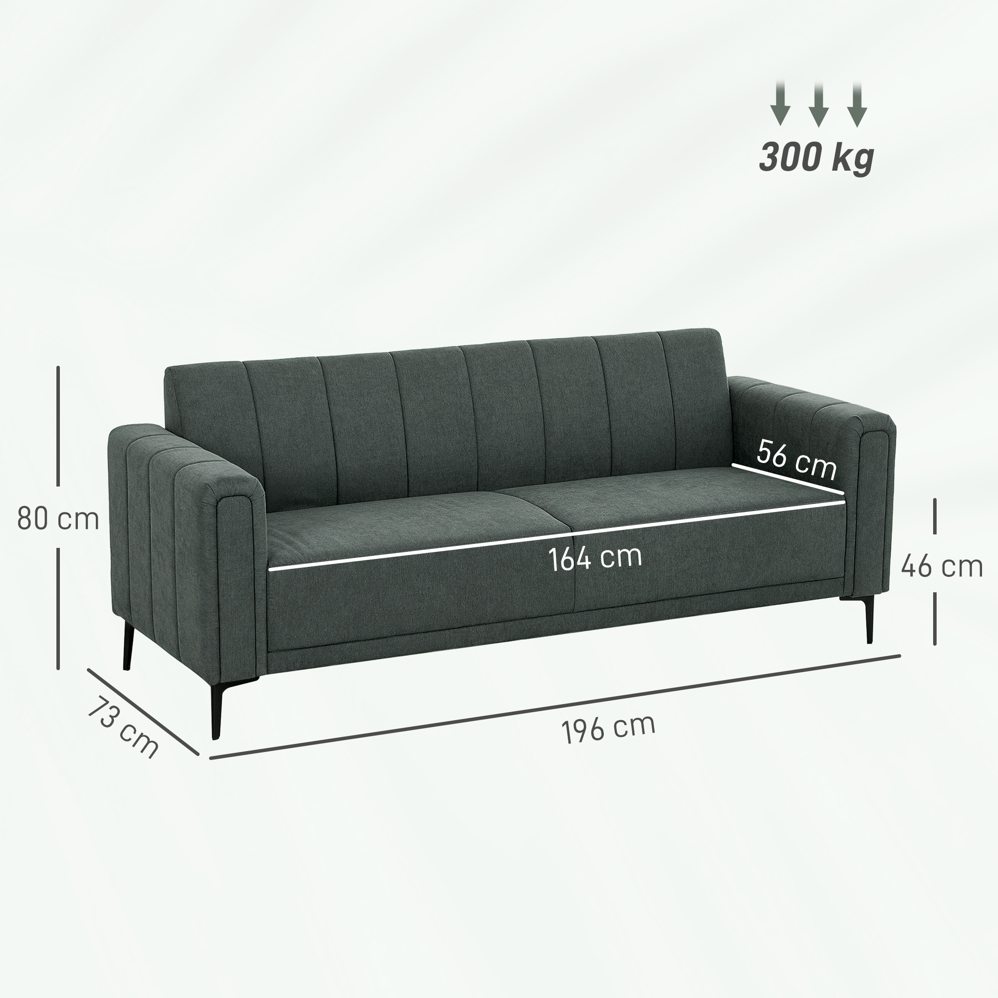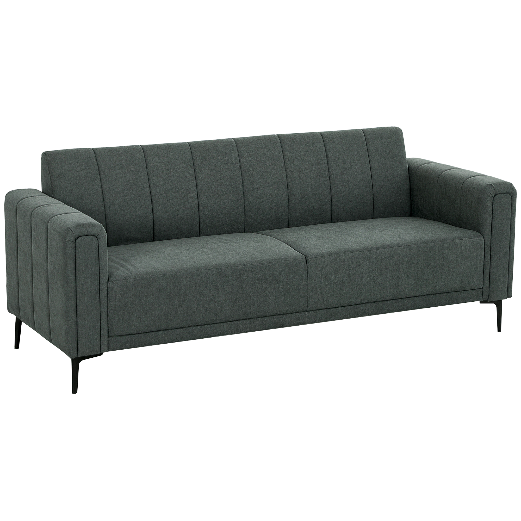 Sink into plush comfort, all day everyday, with this HOMCOM three-seater sofa. The 28cm seat and 18cm padded back is soft, wrapped in smooth linen-look upholstery. Holding up to three people, there's plenty of room to relax by yourself and with company. Complete with steel legs for strong support.