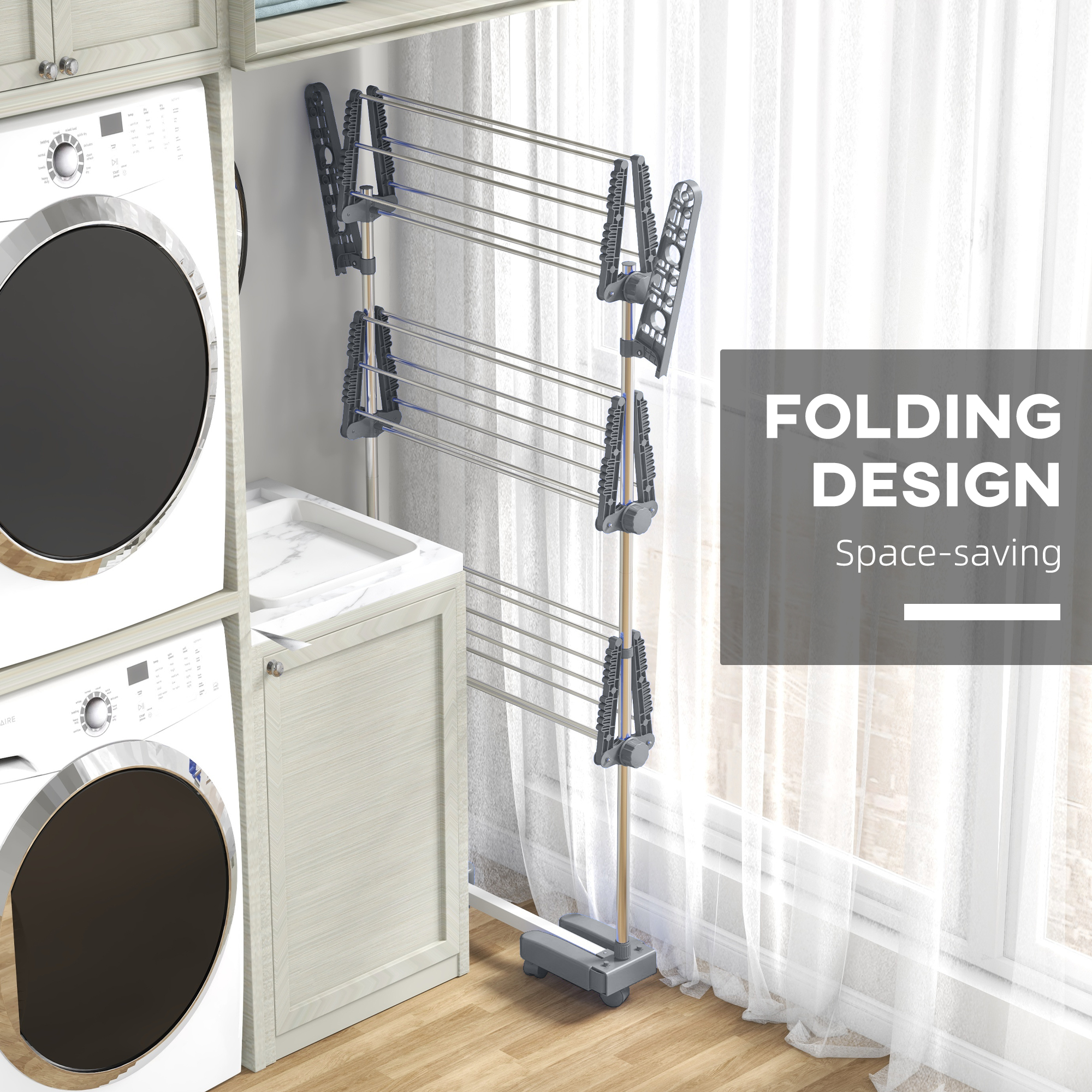 - Stainless steel frame makes clothing airer strong and supportive