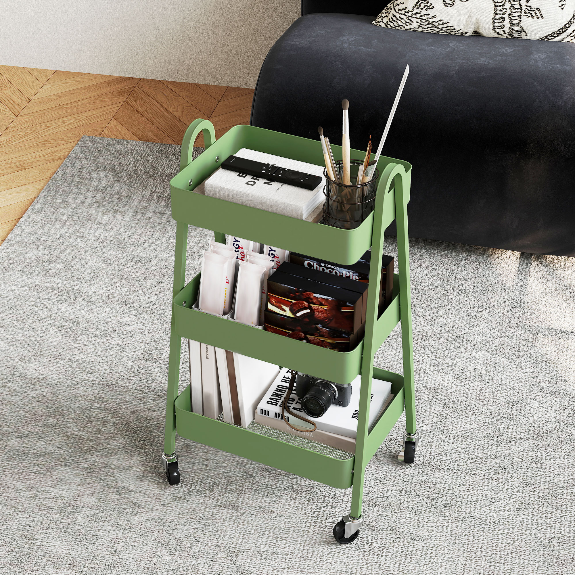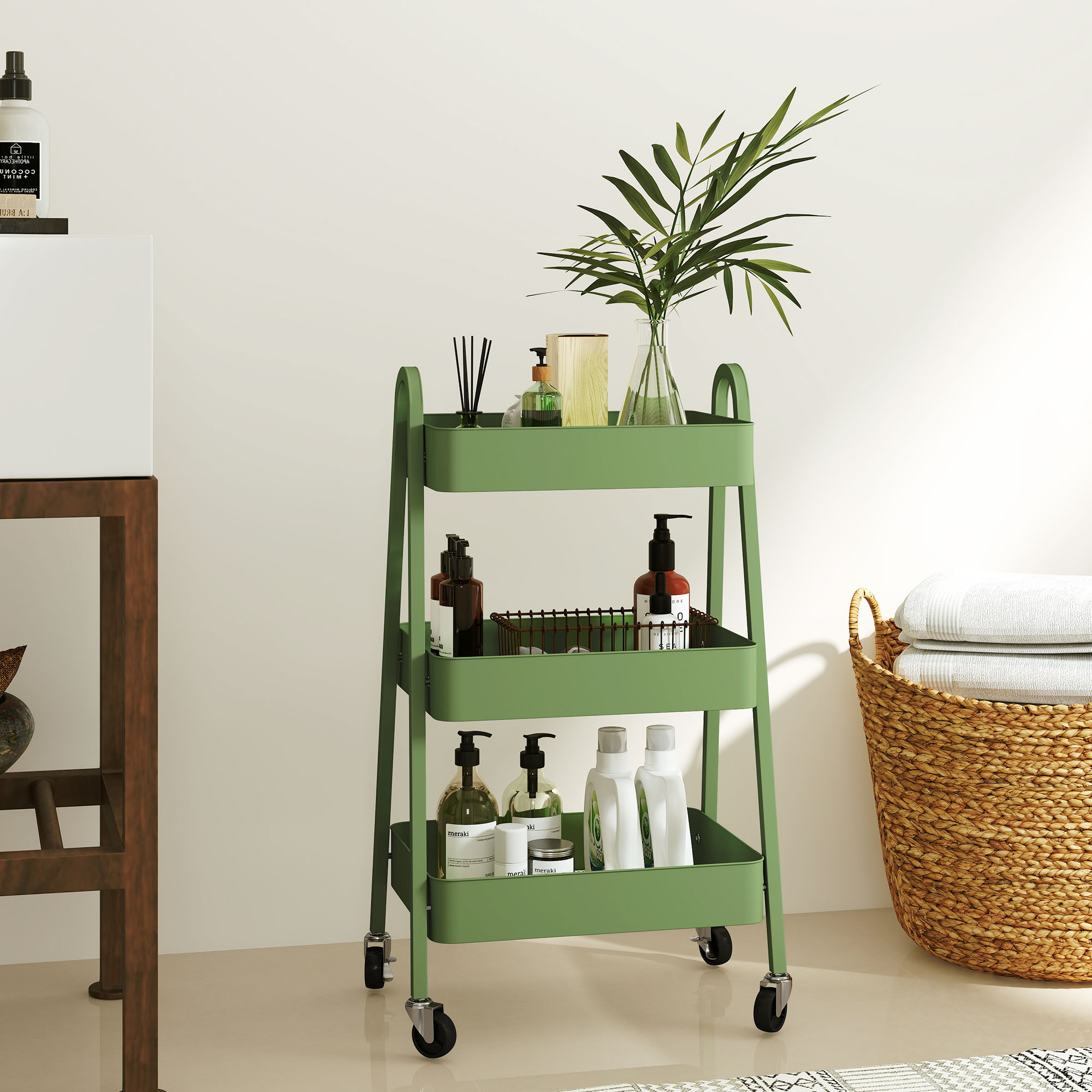 Effortlessly organise whatever you need, with this HOMCOM three-tier trolley on wheels. There's three different sized trays to hold plenty, each with a mesh bottom for air circulation, plus minimal water build-up. Finished with four wheels and two handles to move around easily, with two brakes so it stands in place whenever you need.
