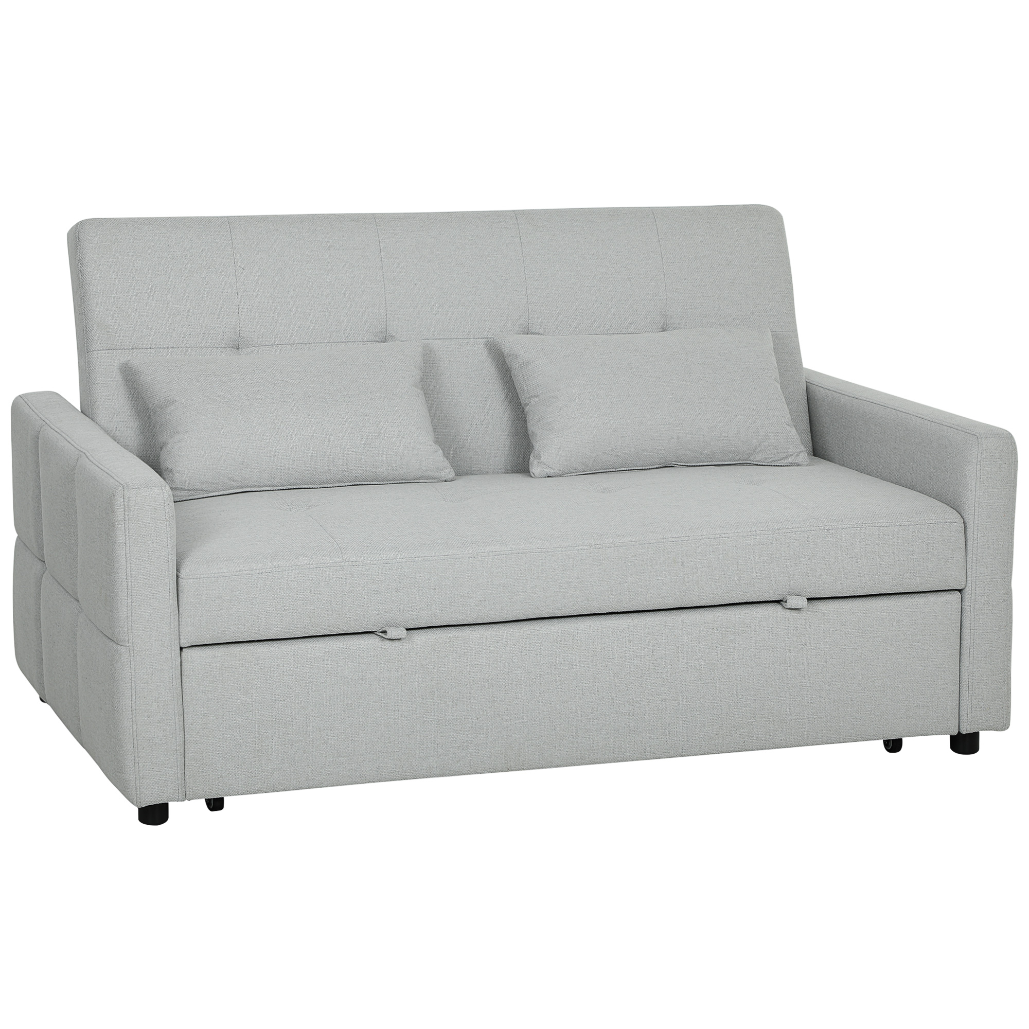 Even in small spaces, you can enjoy comfort at any time of the day - with this HOMCOM sofa bed. The three-part design means you can use it as a sofa, a lounger or bed. Filled with high-density foam, this is comfortable piece; also highly resilient to retain the shape. Wrapped in smooth linen-look upholstery and complete with two pillows.