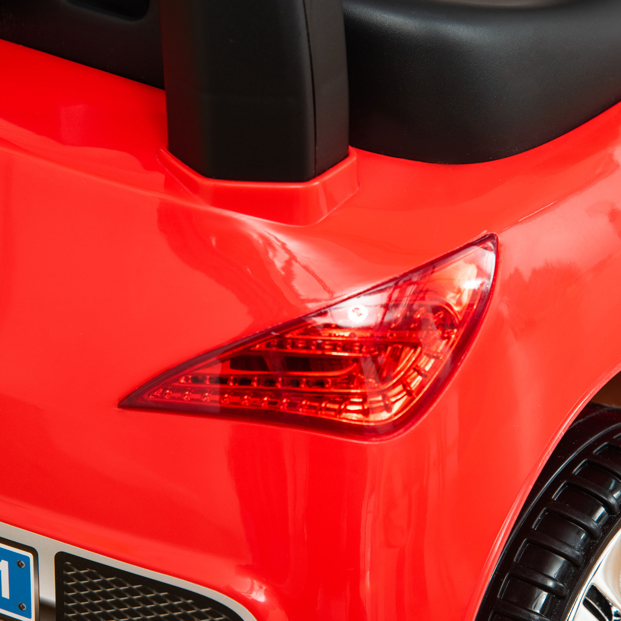 Ride in style with this chic foot-to-floor ride-on from HOMCOM. Its sleek white look and snazzy rims make it resemble a real car, while lights and music enhance the fun. Suitable for ages 18-36 months, it features PP seats and high backrests for comfort. The under-seat storage holds toys and snacks for every adventure. With a big steering wheel and anti-tipping system, it provides secure, controlled rides, making playtime both fun and secure!