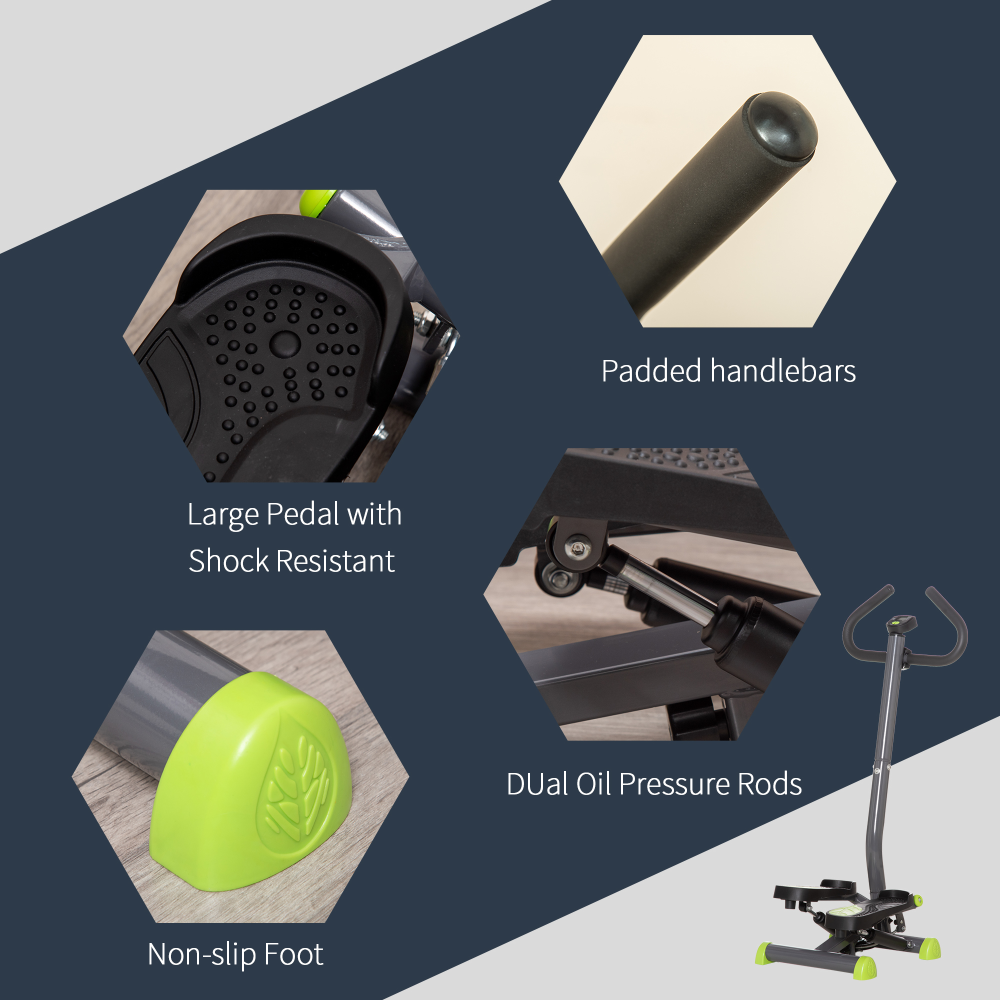Want an active lifestyle? Start at home with this HOMCOM stepping machine. Great for toning legs, glutes, hamstrings and calves, it's the perfect lower body workout. There's an LCD monitor that tracks your step count, time and calories burnt, making it much easier to keep on top of fitness goals. Made from strong steel for durability, it has two handlebars to keep balanced, whilst the large and textured platforms ensure you don't slip off. The perfect way to keep fit in your own space.
