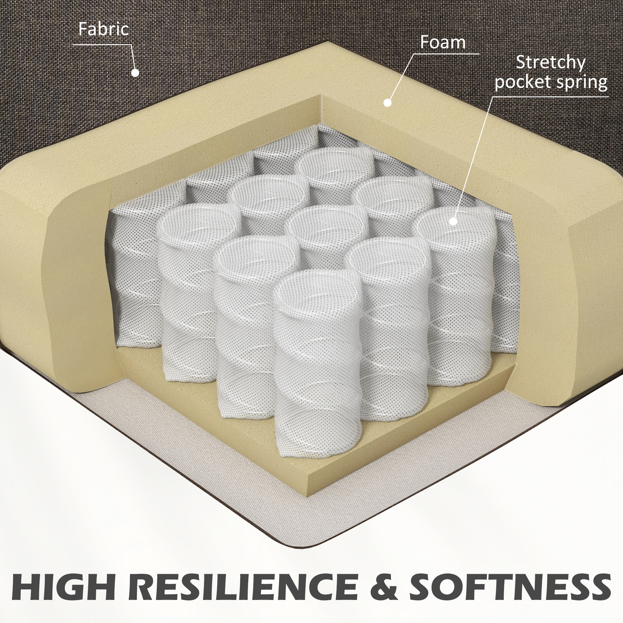 - Soft and comfortable 14cm foam padding. Pocket springs for support and to help retain shape