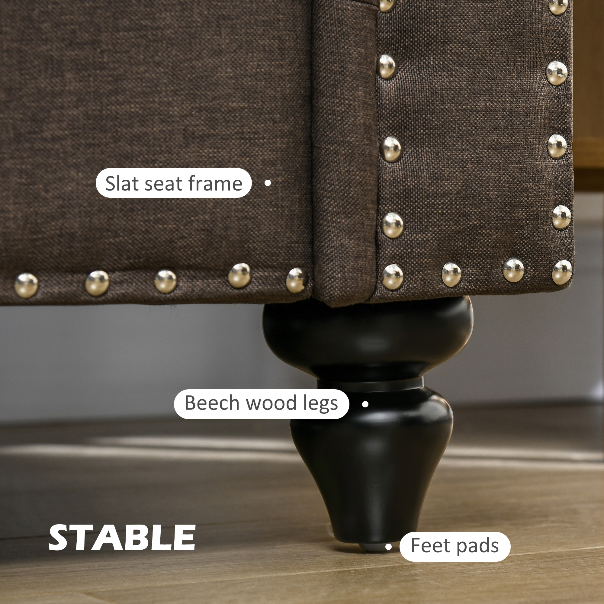 - Slat seat frame and beech wood legs for support. Foot pads to gently protect the floor