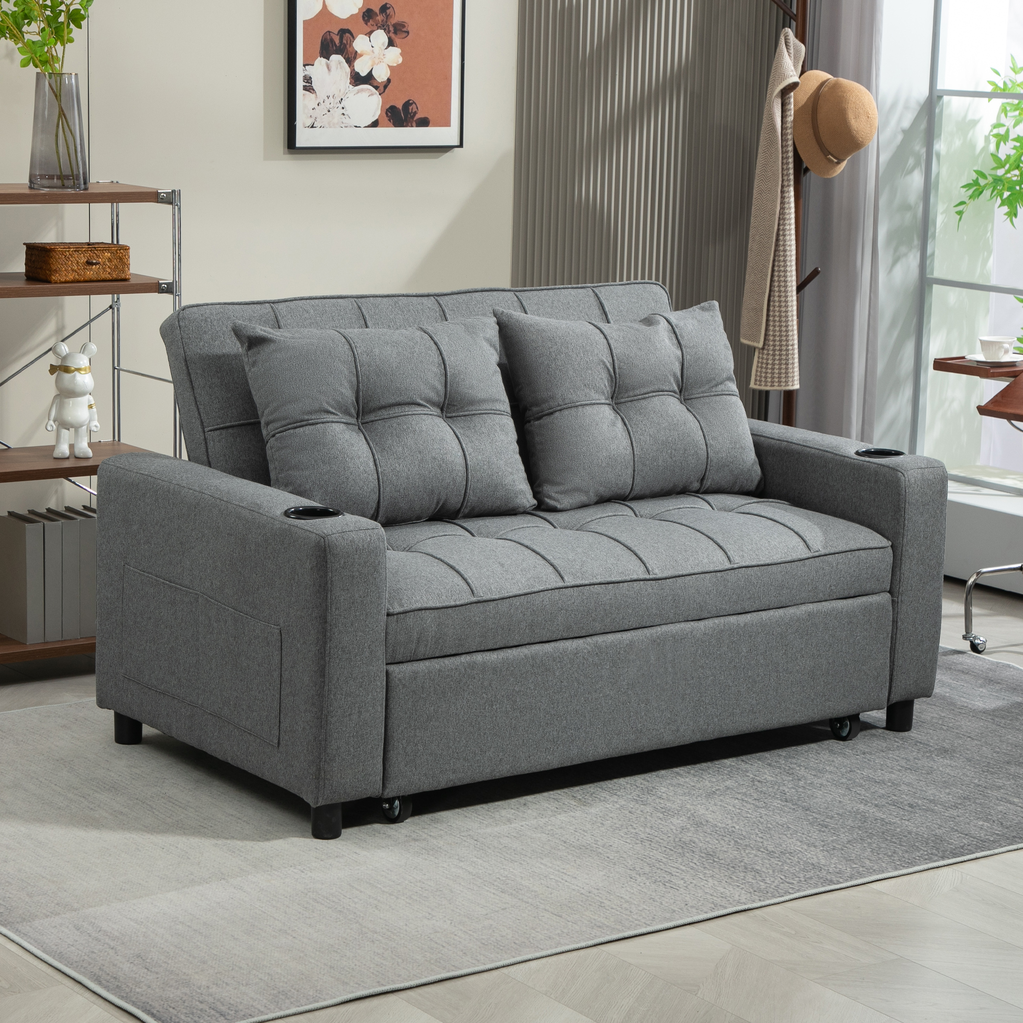 - Loveseat converts easily to a double bed: great for small spaces and overnight guests