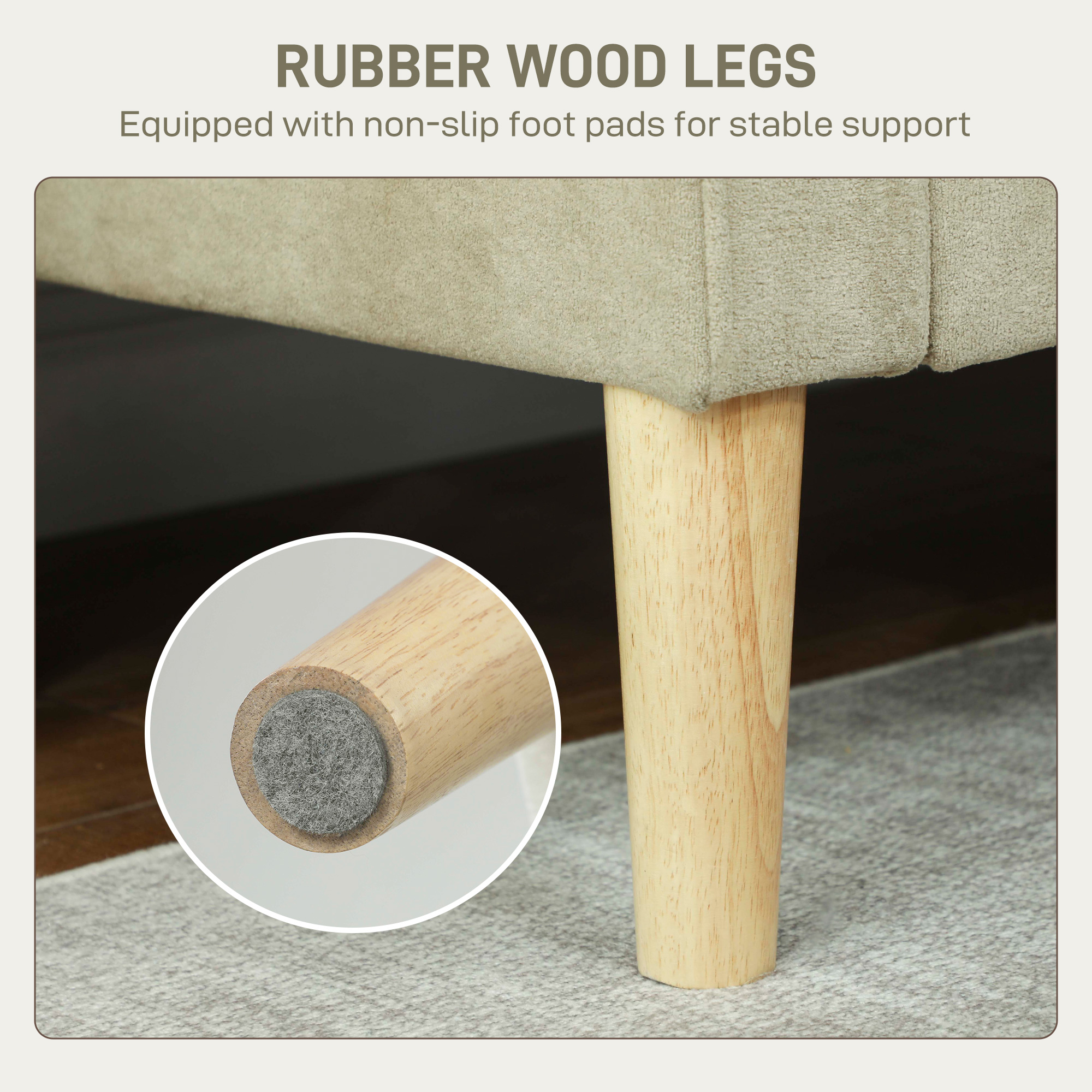 - Material: Velvet (100% Polyester), Foam, Rubber Wood