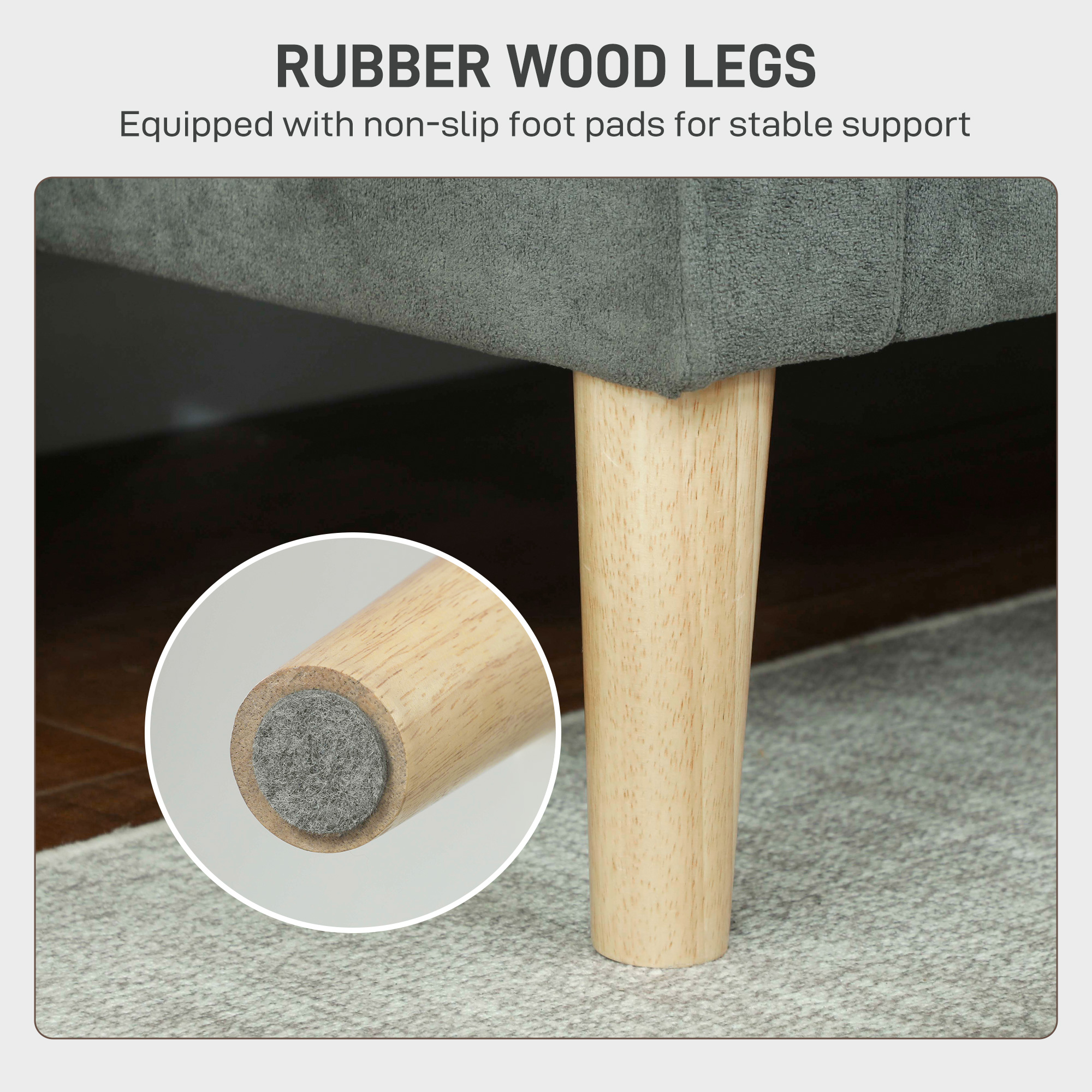 - Material: Velvet (100% Polyester), Foam, Rubber Wood
