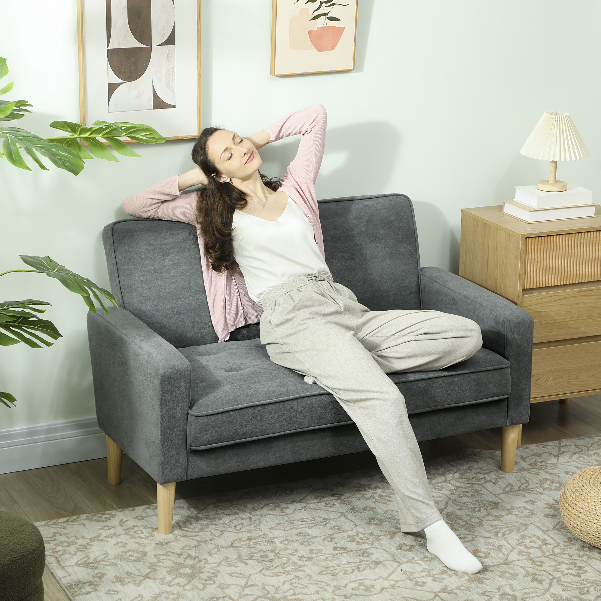 This HOMCOM two-seater sofa is wrapped in velvet-feel upholstery, and supported by 'S' springs: a comfortable piece for whenever you want to relax. It's fitted with wooden legs for strong support, with anti-slip foot pads to protect the floor from light marks and scratches.