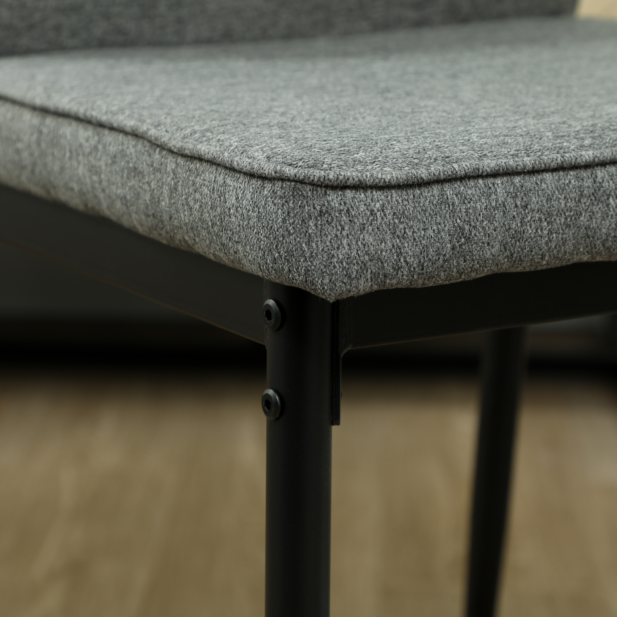 This set of two contemporary dining table chairs from HOMCOM is designed to elevate your dining experience. Geometric backrest and coordinated colour matching make these chairs for dining room stand out in your home decor. Soft velvet-touch and textured linen-look fabric in one, completed with ergonomic curved back, each kitchen chair provides comfort and support for a pleasant dining experience. Enjoy the mix of style and functionality, making every dining moment a delightful experience.