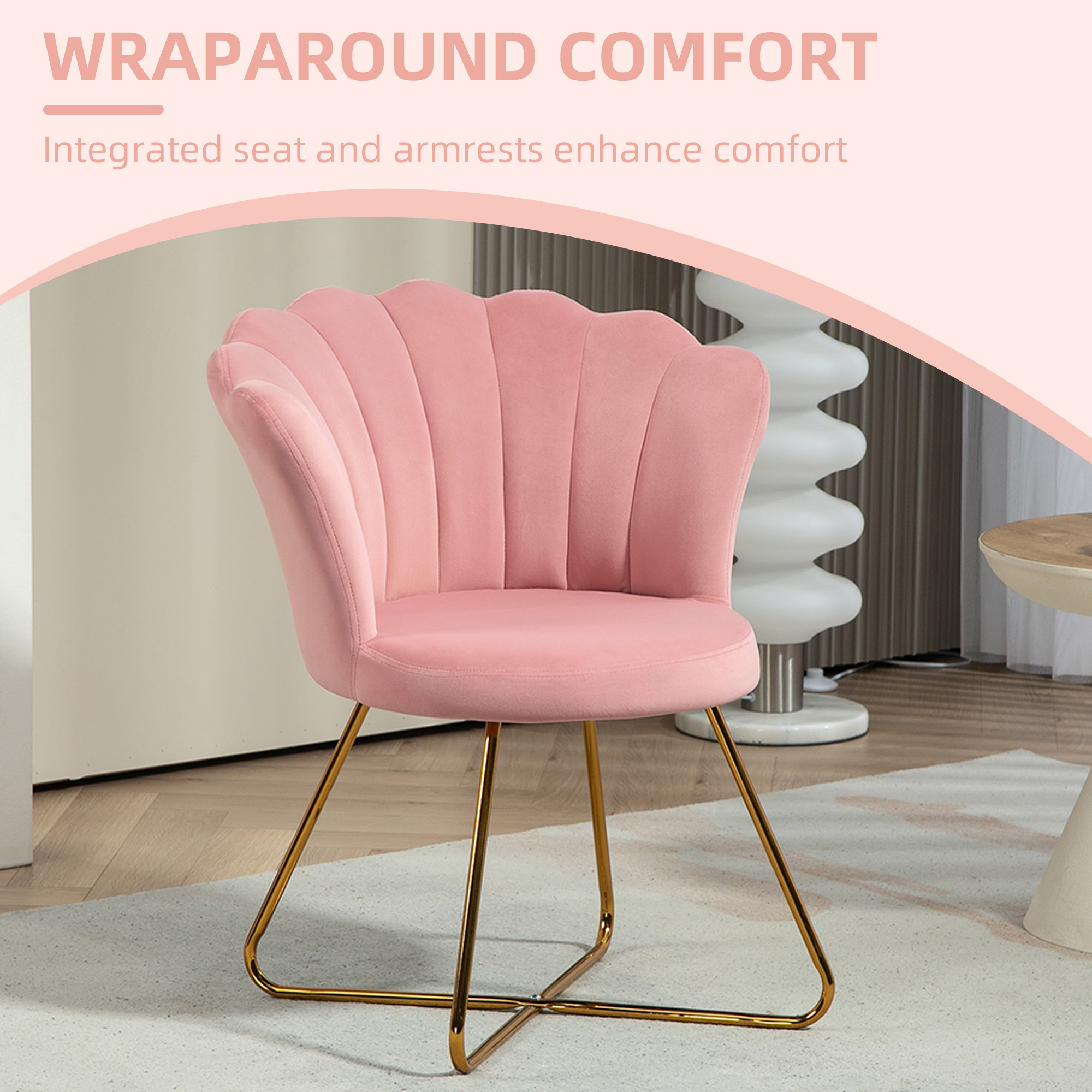 Invite a little luxury into the everyday with this HOMCOM accent chair. It comes with a lotus petal shaped back and is wrapped in velvet-feel upholstery: this is an elegant piece for the bedroom, hallway, living room and beyond. Filled with sponge for comfort and with a high back for support, you'll love sitting on this cocktail chair for extended periods.
