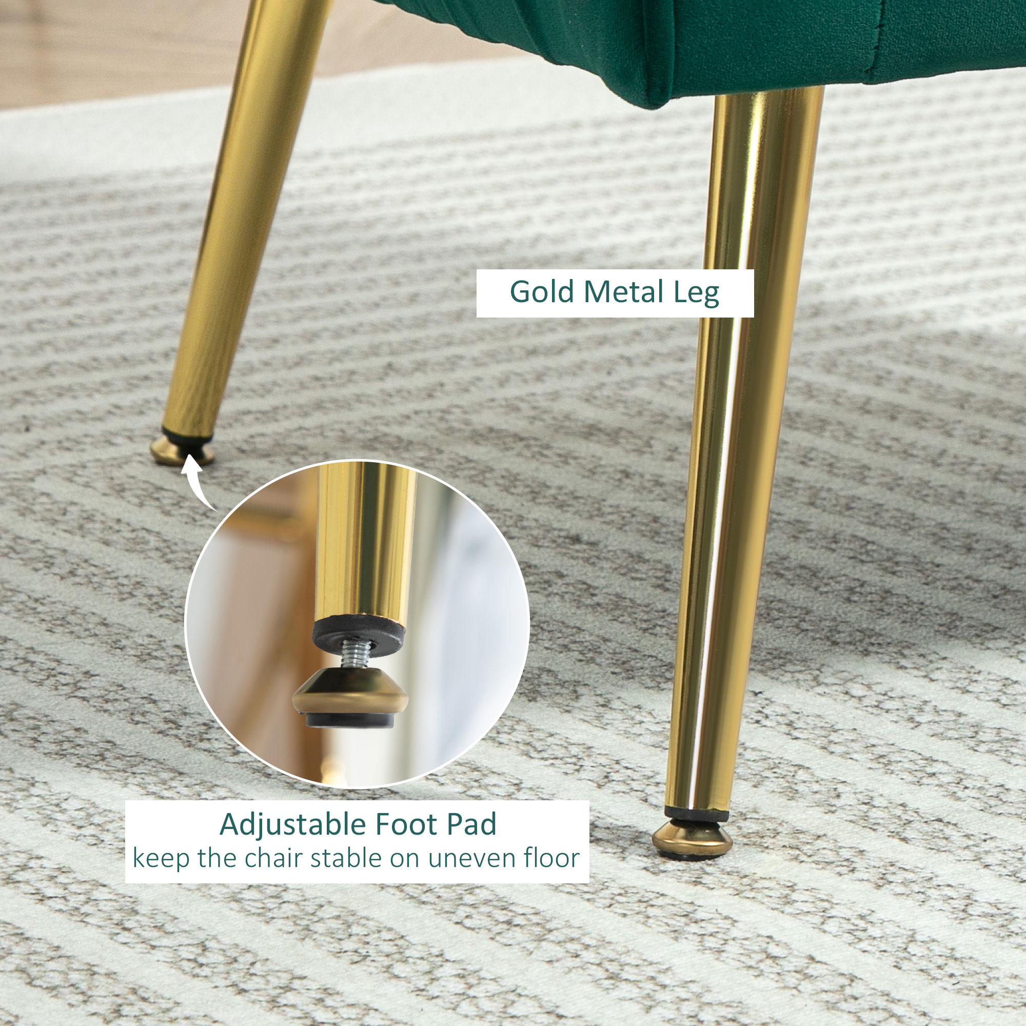Look to this living room armchair to infuse luxury into everyday life. A tub-shaped design for plenty of sitting room, it comes with a thick padded seat for comfort. The wide back and armrests offer support. Wrapped in velvet-feel upholstery, this occasional chair is soft and beautiful; the green colour effortlessly adds to the beauty. Metal legs for full support, it's completed with back indents for a shell-like appearance.