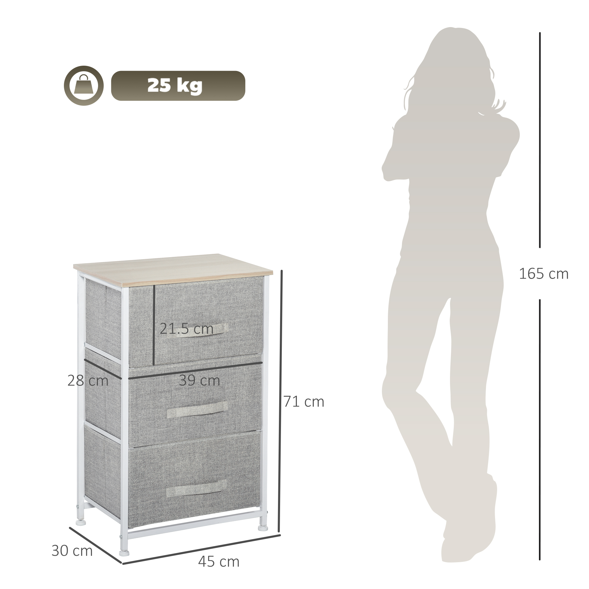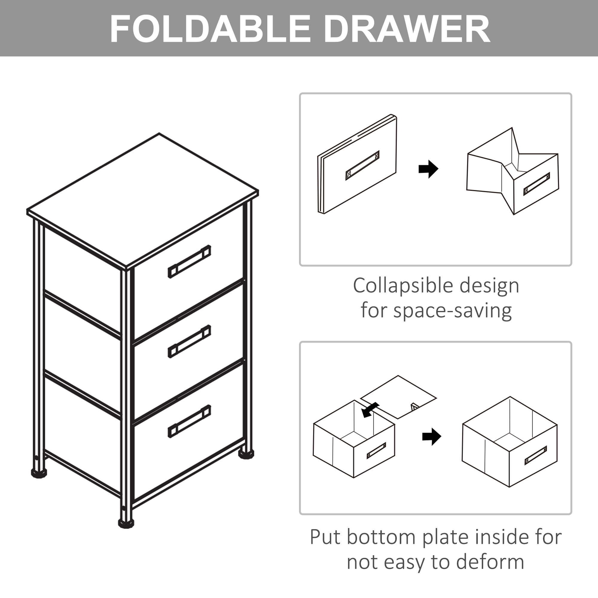 The simplicity of this three-drawer unit from HOMCOM means it will welcome itself into your home with ease. The light grey and white colourway, in a classic sharp shape, works great all over the home - from the bedroom, to the hallway, living room and beyond. With a powder-coated steel frame for strength, it is fitted with three thick linen drawers for storage. It's finished with handles on the drawers to open them easily.