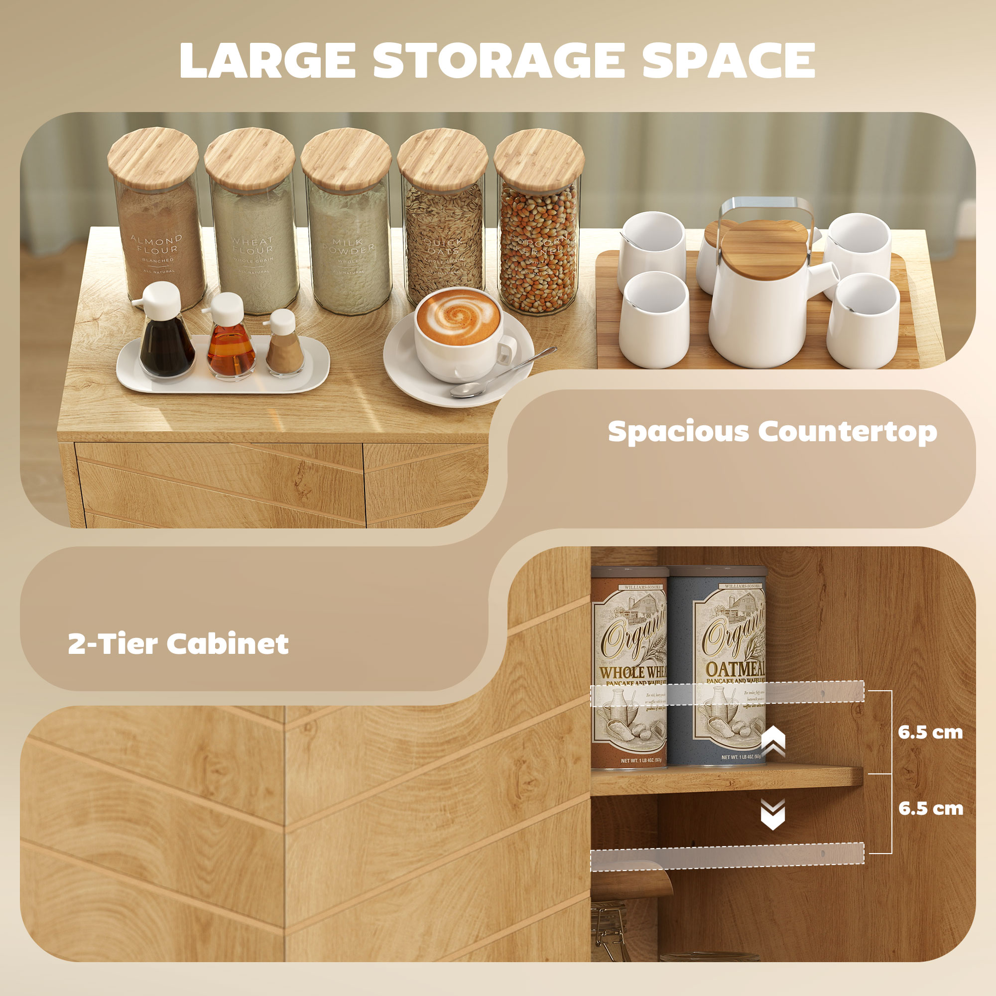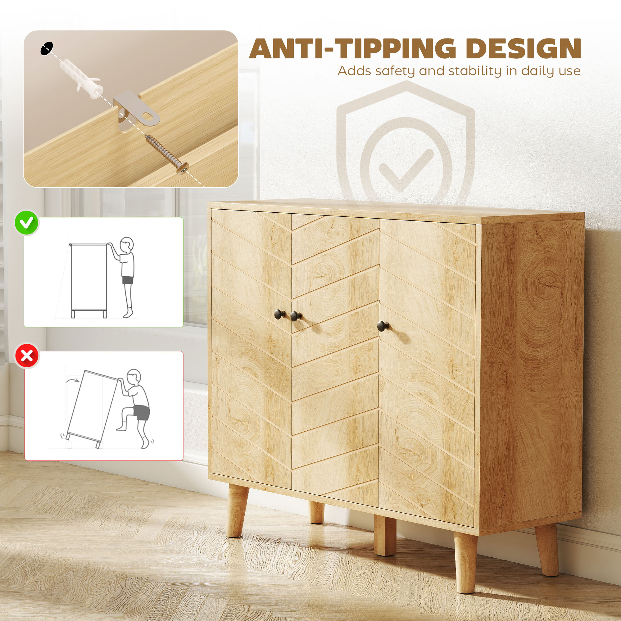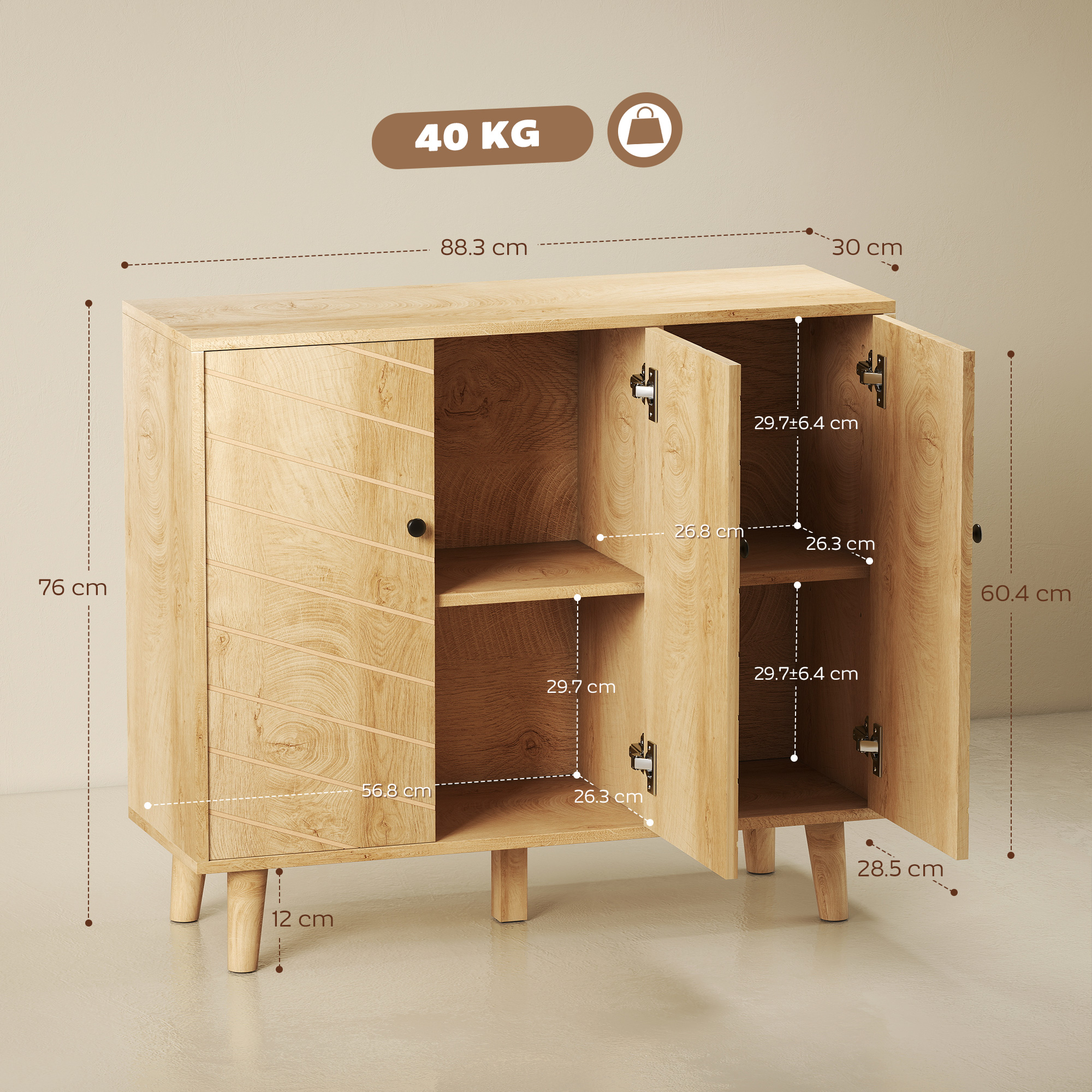 Keeping your home storage style simple and classic this season - look to this HOMCOM sideboard. Made from MDF for a reliable structure, it comes in a wood-effect design: a forever-classic look which matches beautifully with your current furniture. Open the three doors and inside there's two middle shelf - creating four areas for you to store items. Complete with four wooden legs for plenty of support.