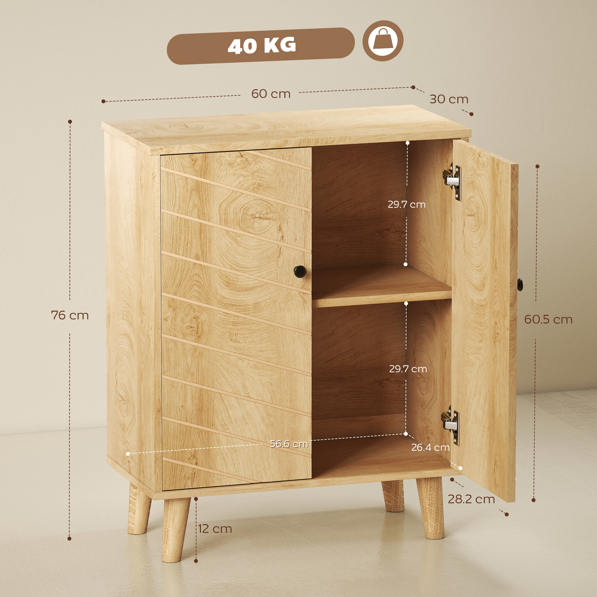 Keeping your home storage style simple and classic this season - look to this HOMCOM sideboard. Made from MDF for a reliable structure, it comes in a wood-effect design: a forever-classic look which matches beautifully with your current furniture. Open the two doors and inside there's a middle shelf - creating two areas for you to store items. Complete with four wooden legs for plenty of support.
