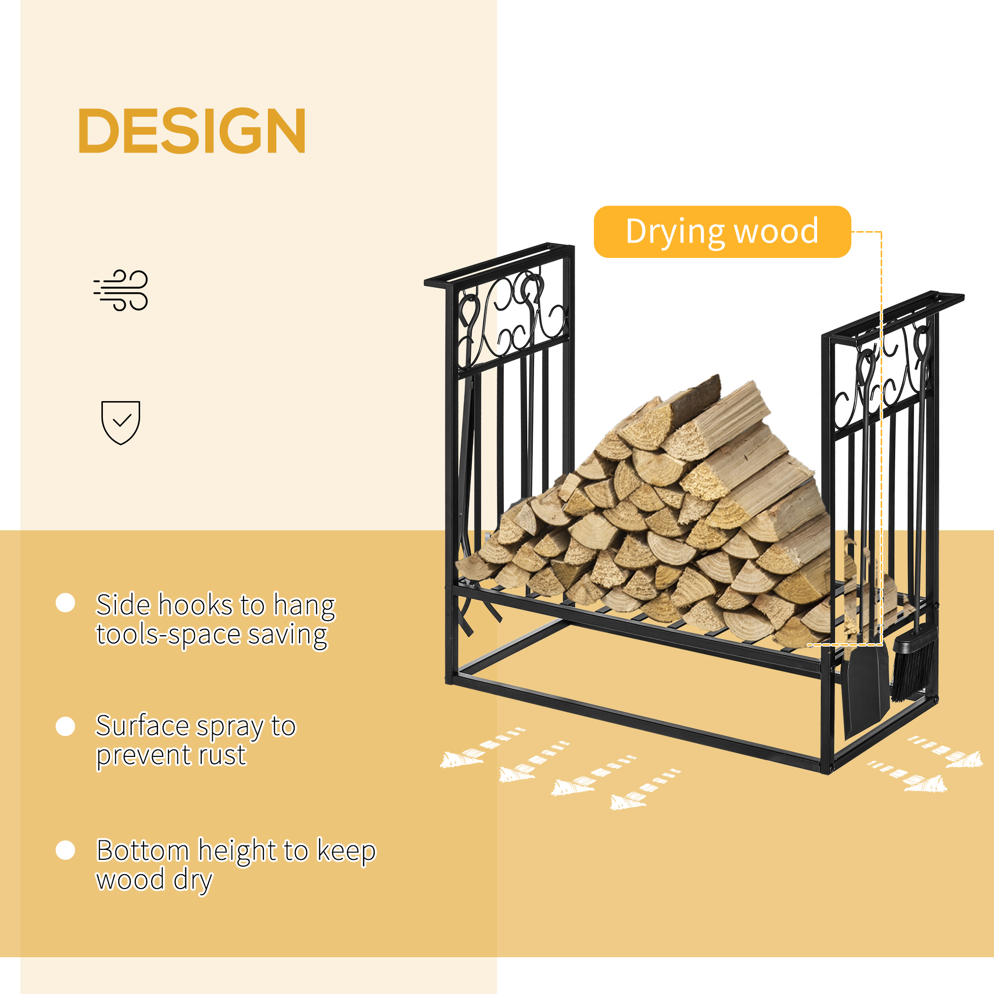 - Elevated base to keep the wood logs dry