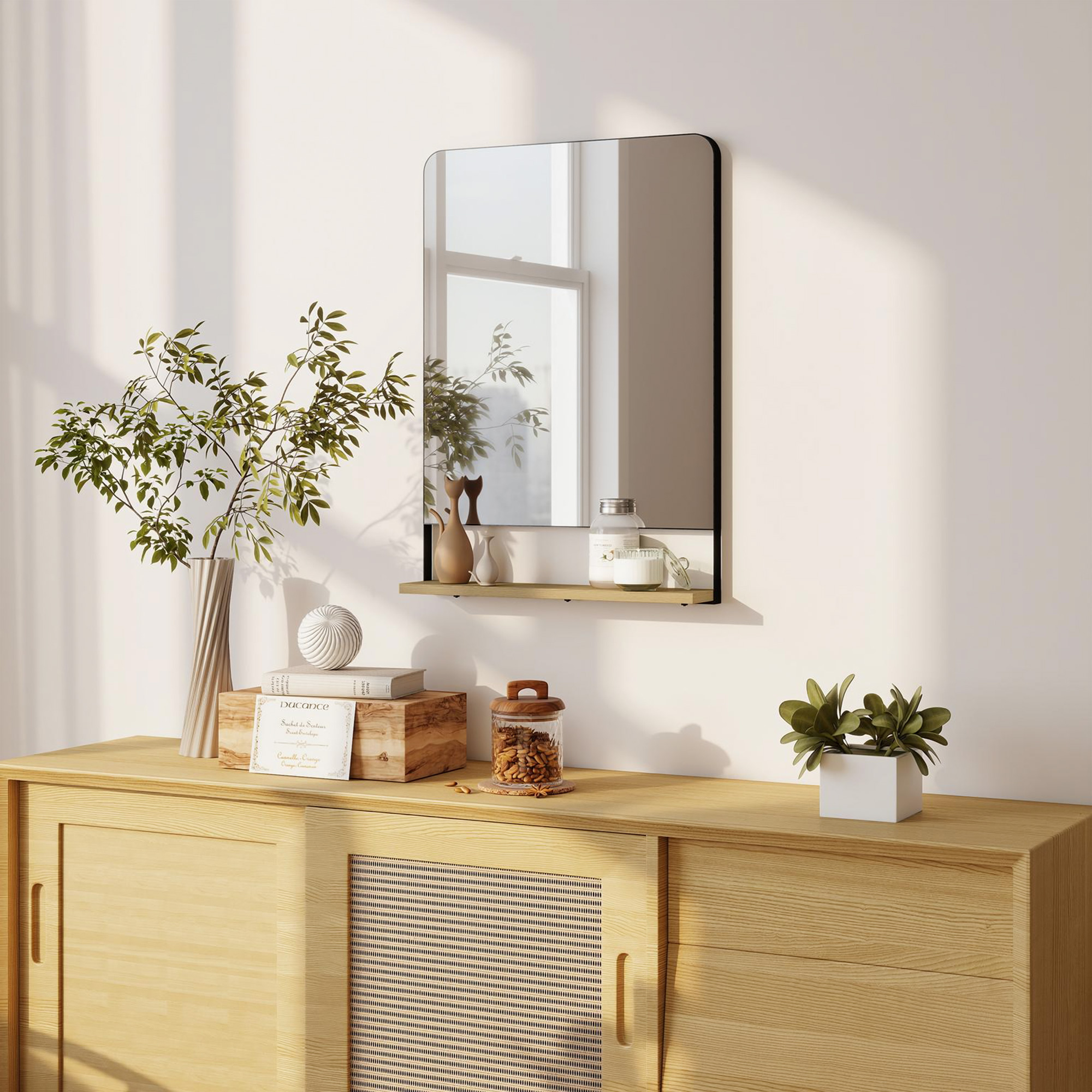 - Features an integrated shelf to keep your entryway organised and clutter-free