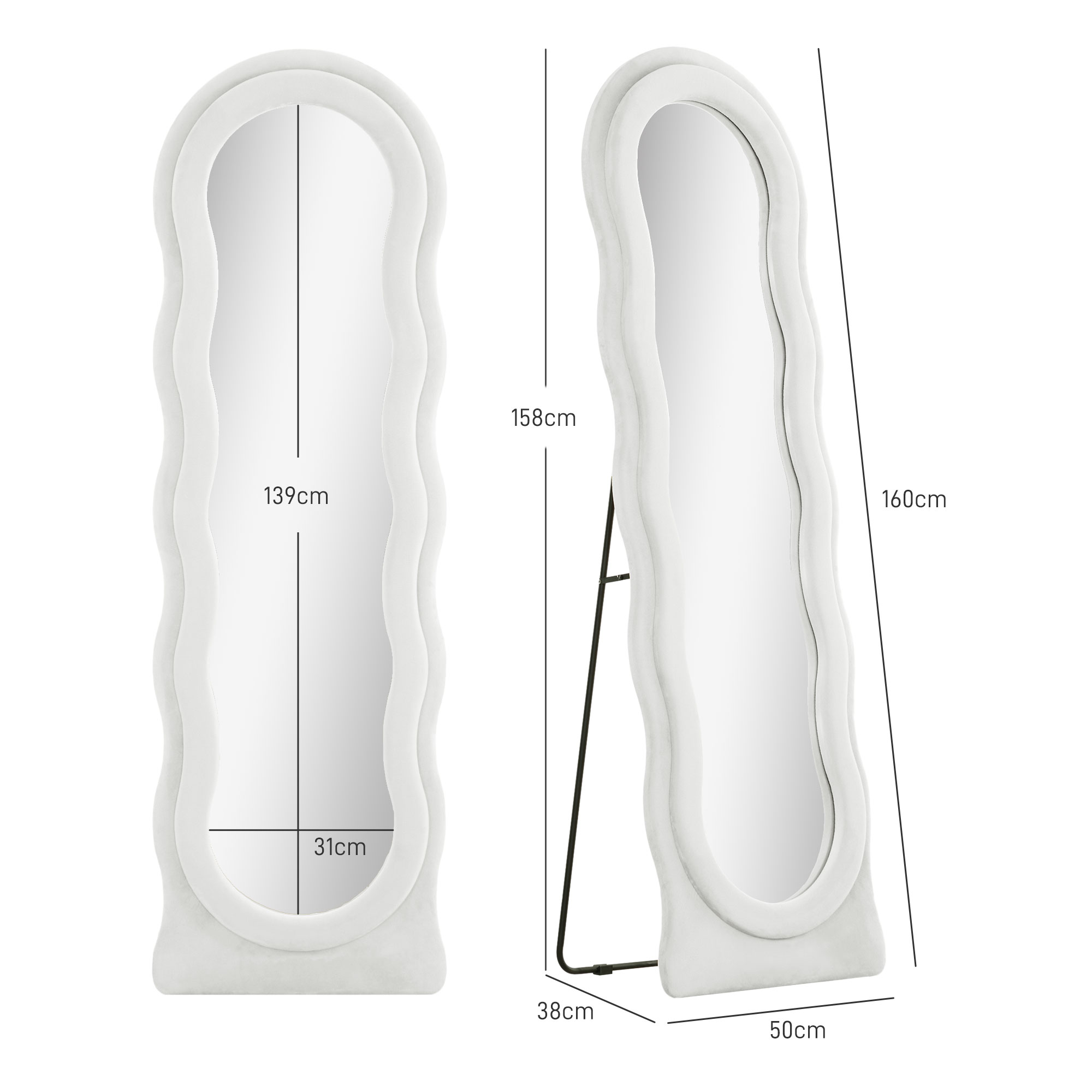 Fun and funky, this HOMCOM wavy mirror creates a statement in your home and beyond. The wavy shape, block colour and velvet-feel finish of the frame all work together to give it a bold, retro look; let the standing mirror work alongside your furniture, or give it a place which allows it stand out and command attention forever more. Thanks to the full length and thick glass, you can see yourself fully and clearly: you'll be leaving your home confidently forever more.