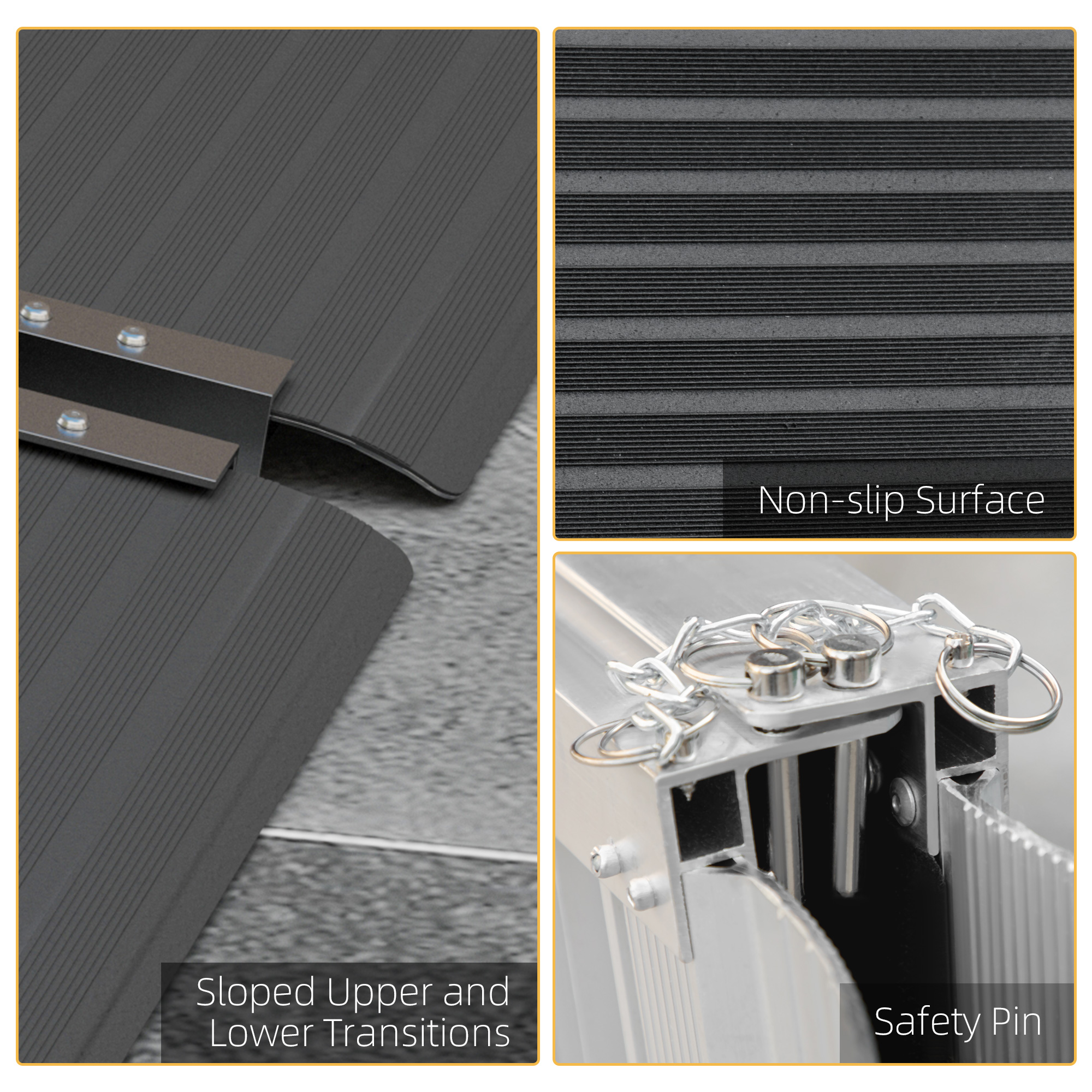 HOMCOM's all about making your life on the go easier with our aluminium wheelchair ramp. These ramps are tough and lightweight, made from strong aluminium alloy. We've taken care of safety too – they come with a specially treated non-slip surface, raised edges on both sides and an extended tail plate design. And don't sweat the transportation – the threshold ramp is foldable, so you can stash them in your vehicle. Ideal for wheelchairs, scooters, bikes and any other tricky-to-move wheels.