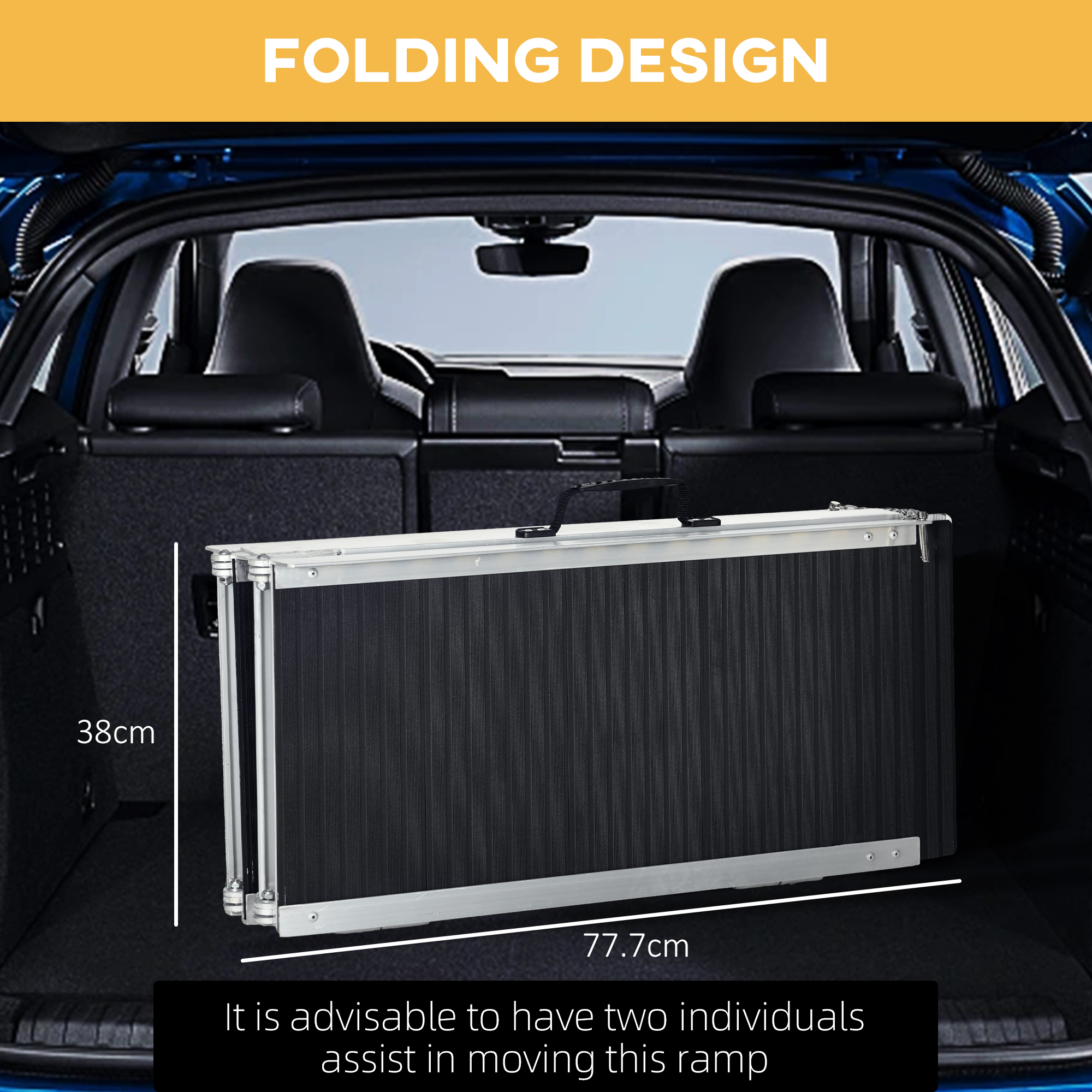- Folded, safety pins secure the ramp