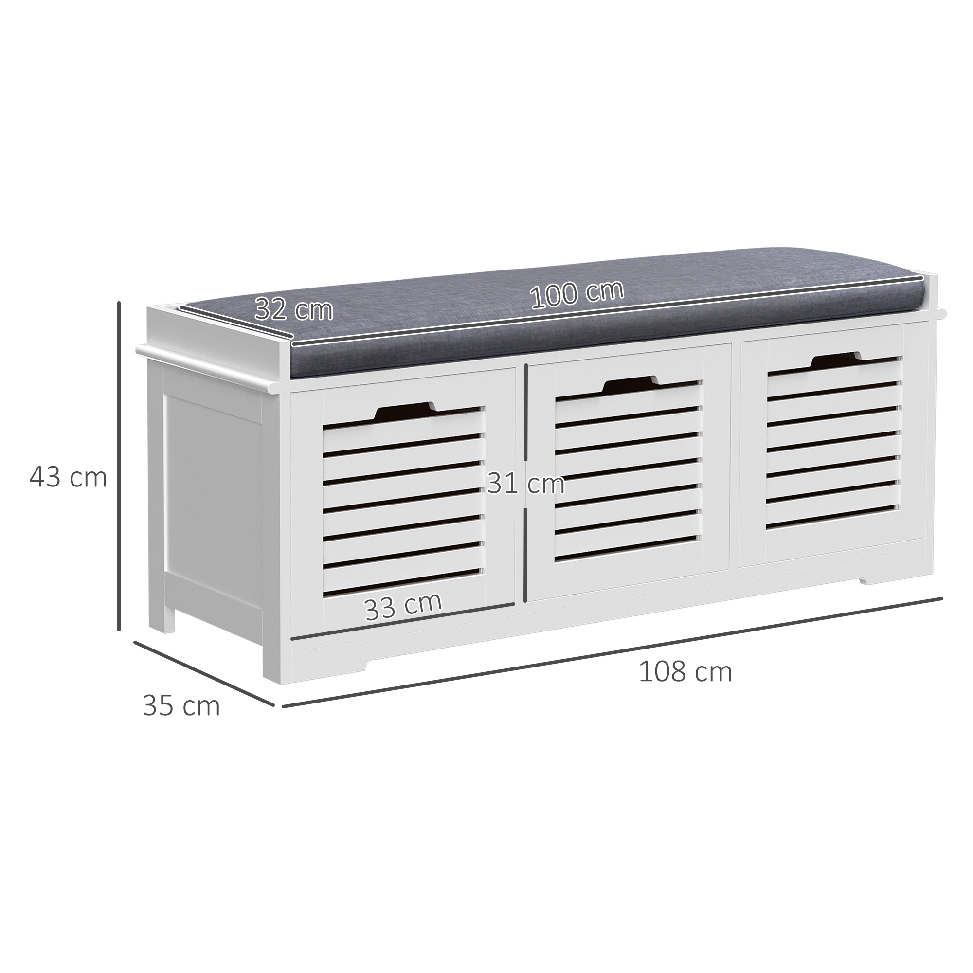 Give your shoes somewhere proud to stand with this storage unit from HOMCOM. Its design is made of three compartments for lots of holding space, with a flat cushioned top so you are able to sit on it. Made from MDF, the frame is tough and reliable for everyday use. Using sponge for the cushion for comfort, it is wrapped in linen so it is smooth and easy to wipe clean. The slatted doors of the compartments allow fresh air to circulate through, with low corner feet elevating the unit to finish.