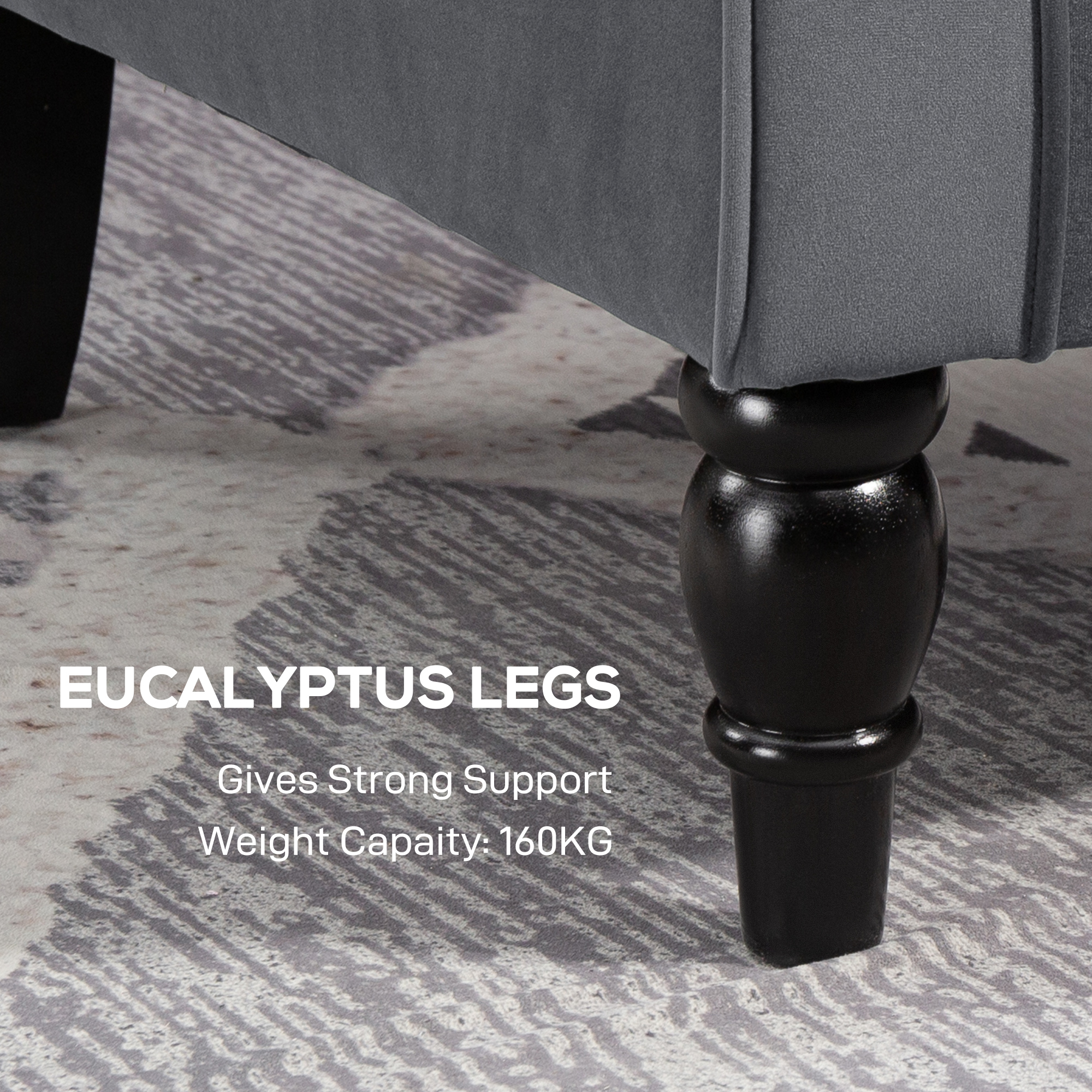 - Velvet-feel upholstery offers a soft and cosy surface