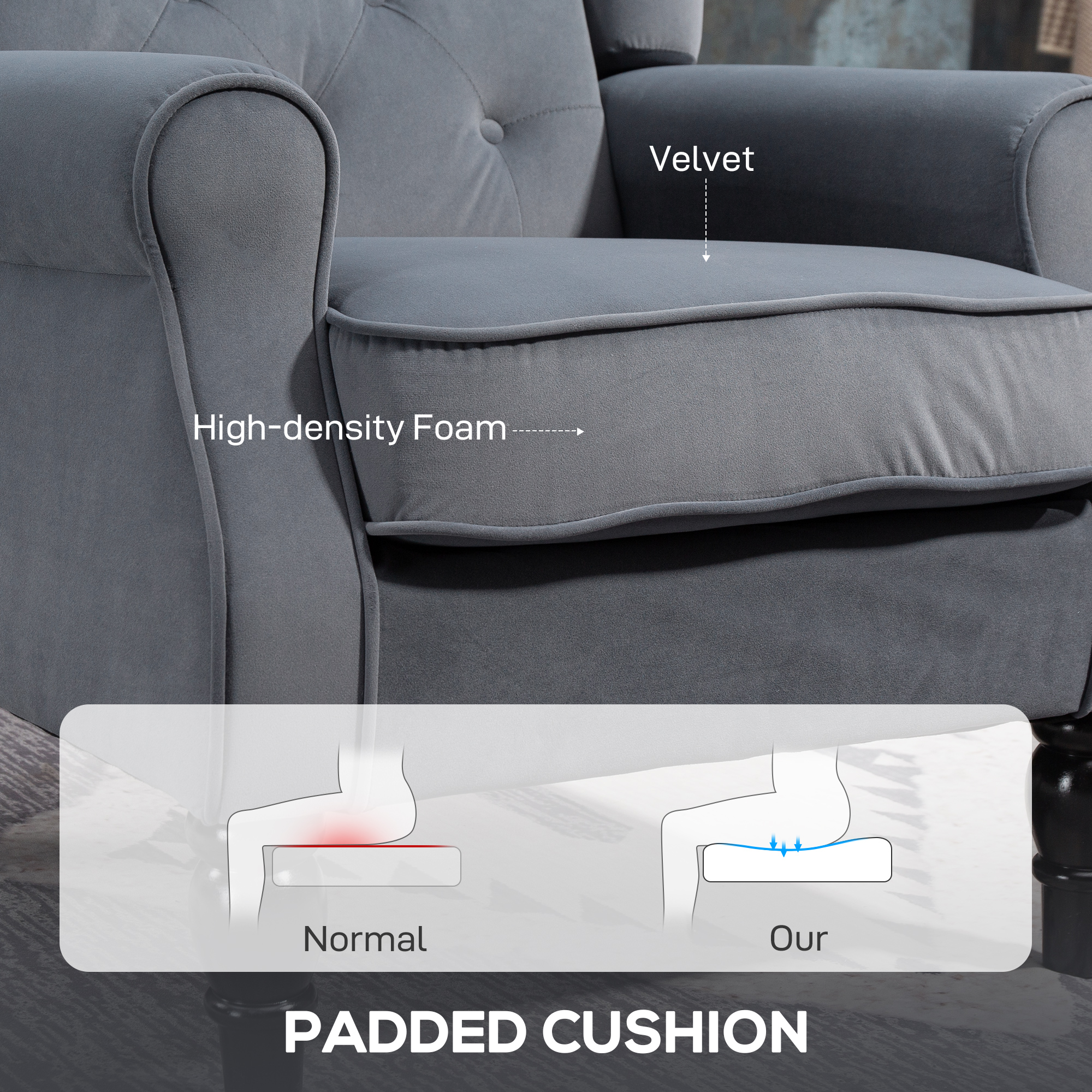 - Material: Velvet (100% Polyester), Wood, Sponge