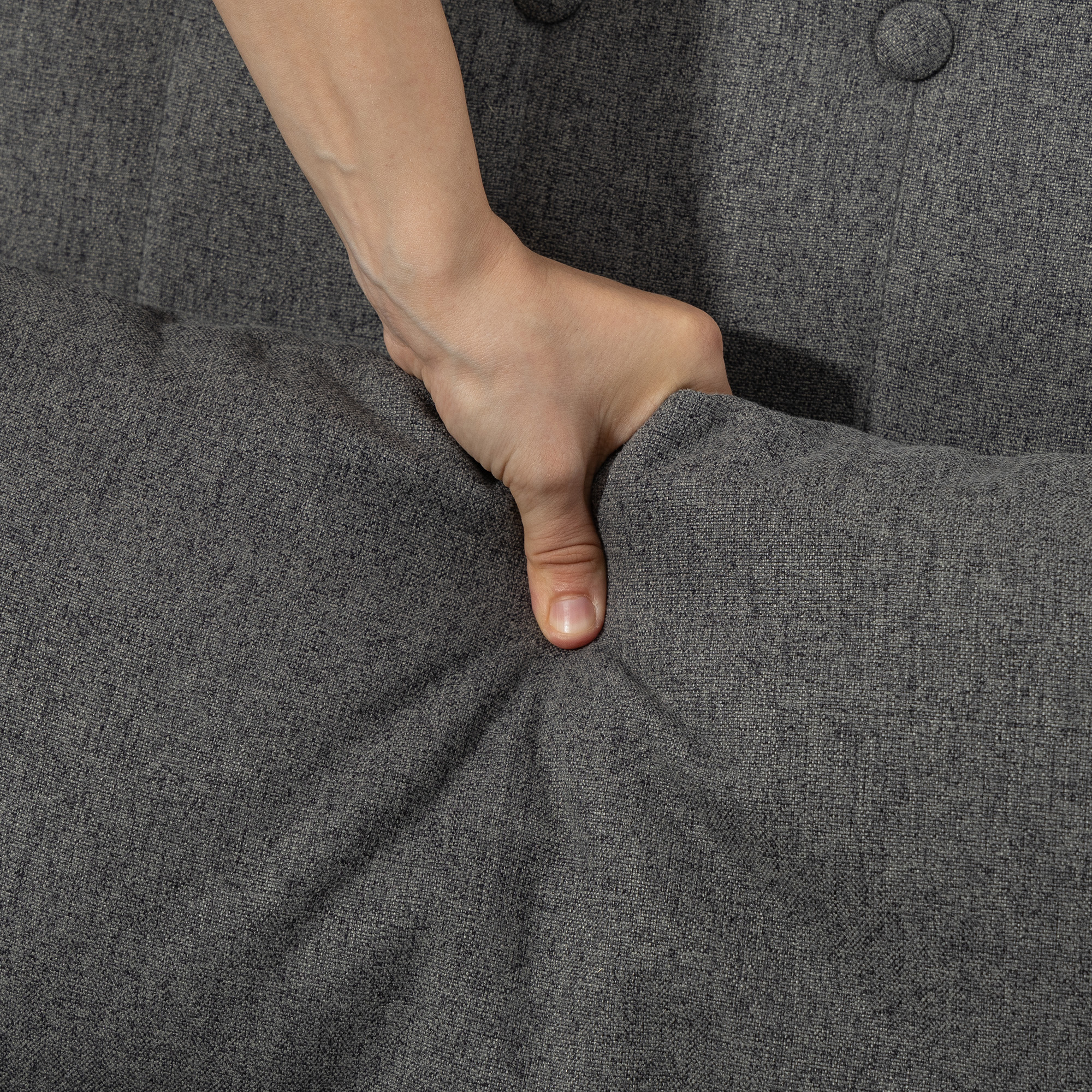 - Material: Cotton-Linen Fabric (100% Polyester), Foam, PP Cotton, Rubberwood