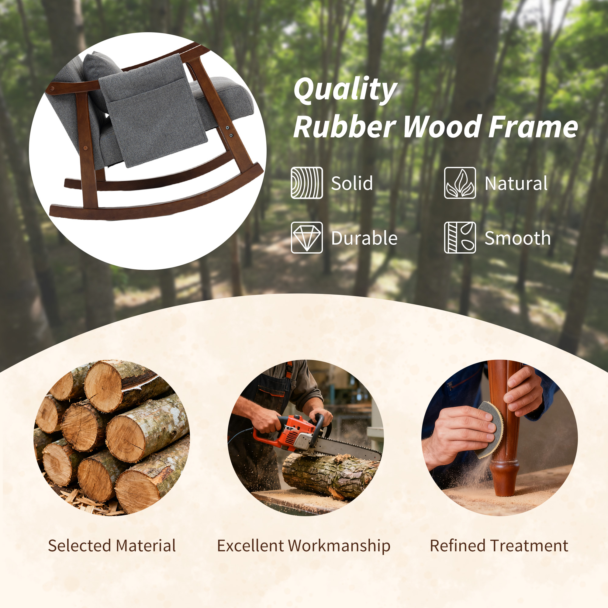 - Rubberwood frame means a strong core. Natural finish is beautiful, complements the fabric seat