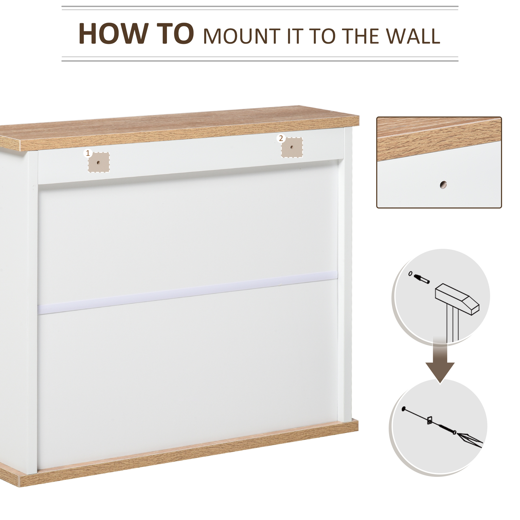 - Wall-mounted mirror cabinet features double doors with adjustable shelf
