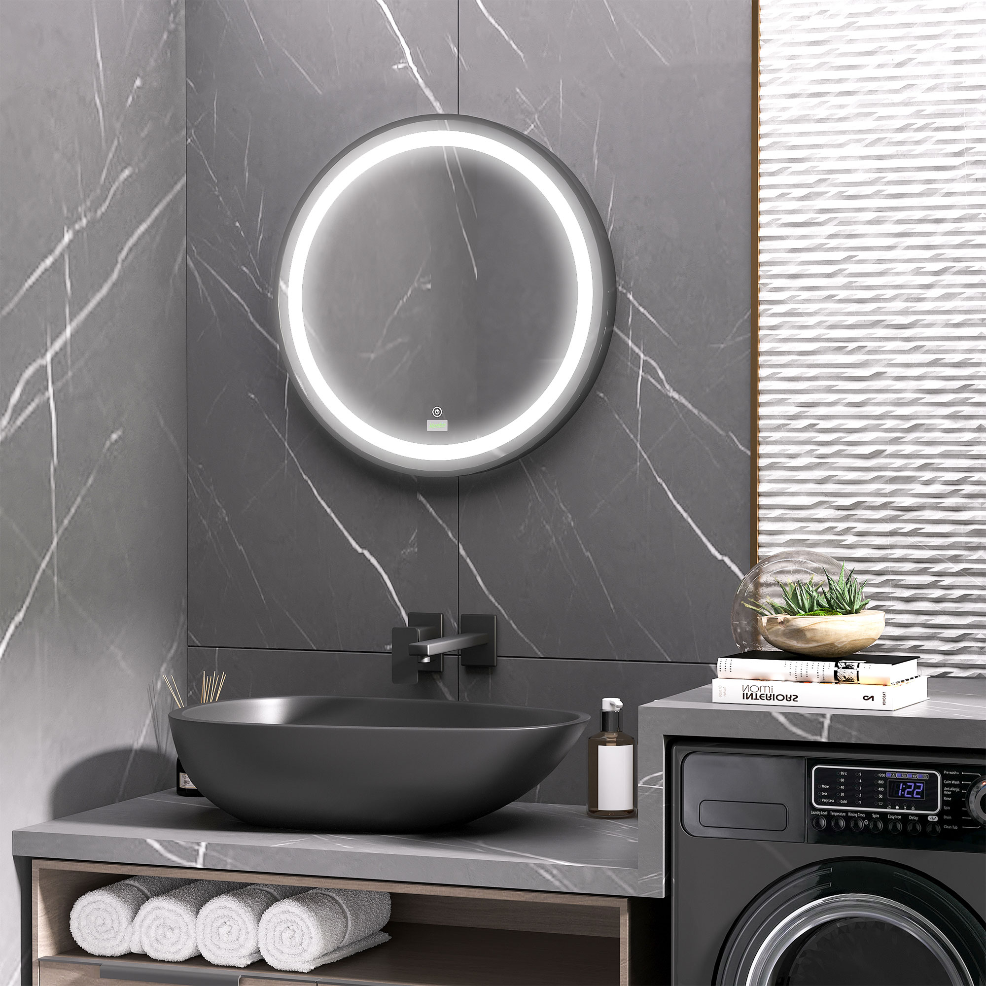 - Outer LED light on this round bathroom mirror - 50,000 hours lifespan