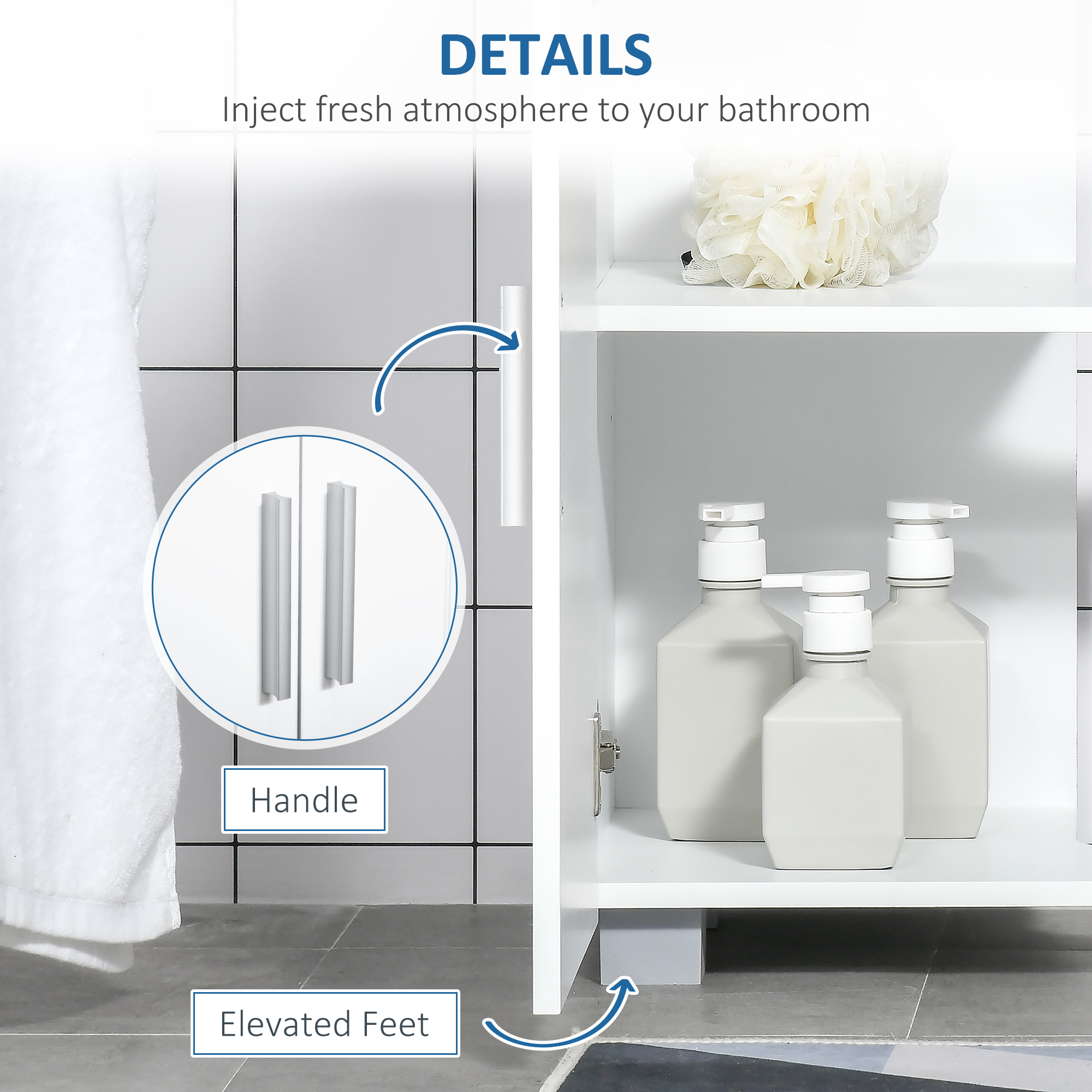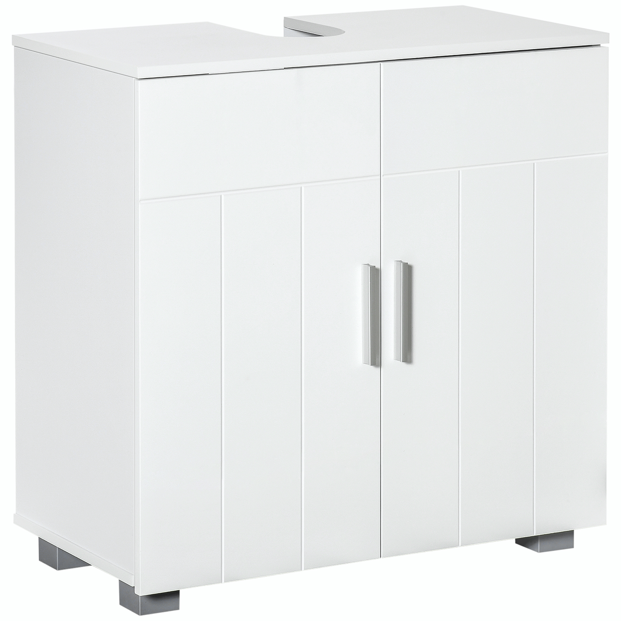 This kleankin under sink cabinet is great for expanding space where room is tight. It has been designed to fit under pedestal shaped sinks. The clean boxy shape and white colour complements any bathroom style; its MDF formation is sturdy with a water-resistant finish. Inside, there's a generous amount of space, with an adjustable shelf to fit differently-sized items easily. Finished with metal handle on the doors to open and close easily.