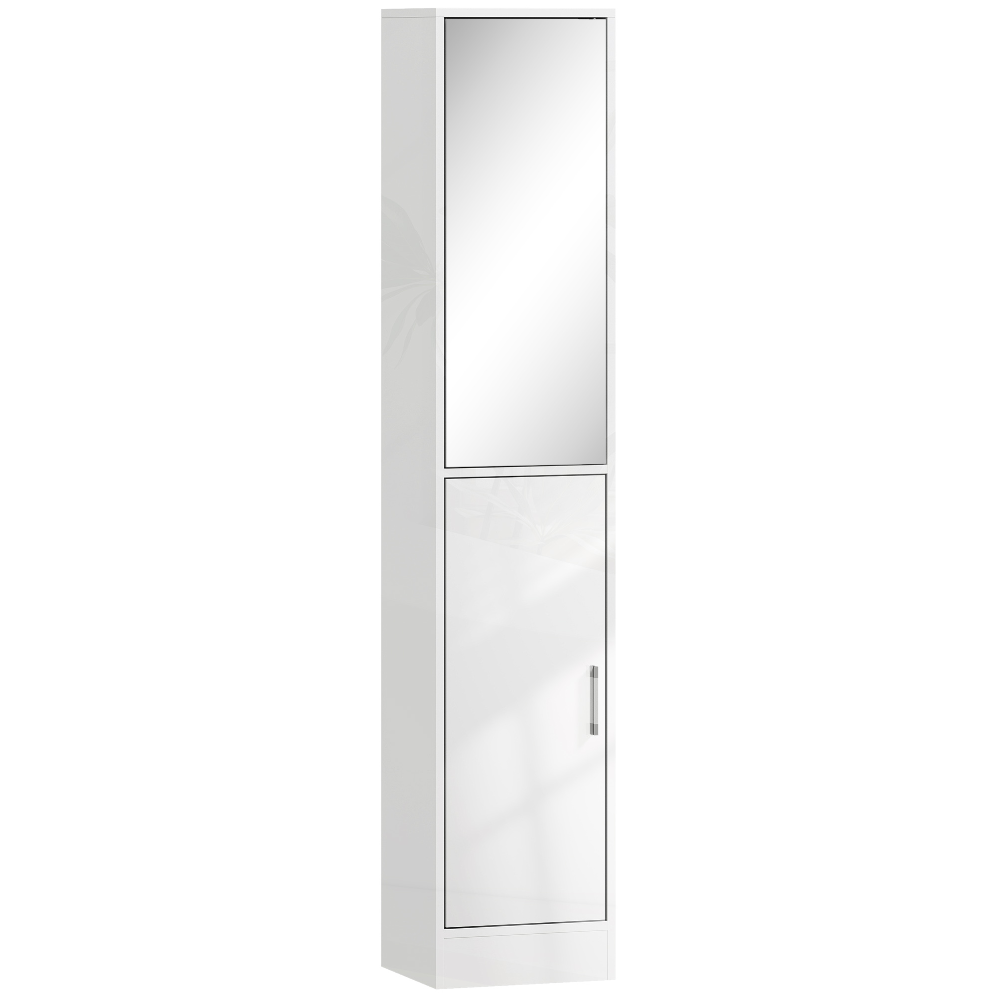 A beautiful and tidy bathroom starts with this slimline cabinet from kleankin. Inside, there are five shelves which offer plenty of storage - separate sections give each family/flat member their own individual space. Two-cupboard design comes with two doors: top is fitted with a mirror so you can get ready, with push-open operation to open/close easily; bottom is fitted with handle. Made from particle board, it's robust and suitable for everyday use, finished with safe anti-tipping straps.