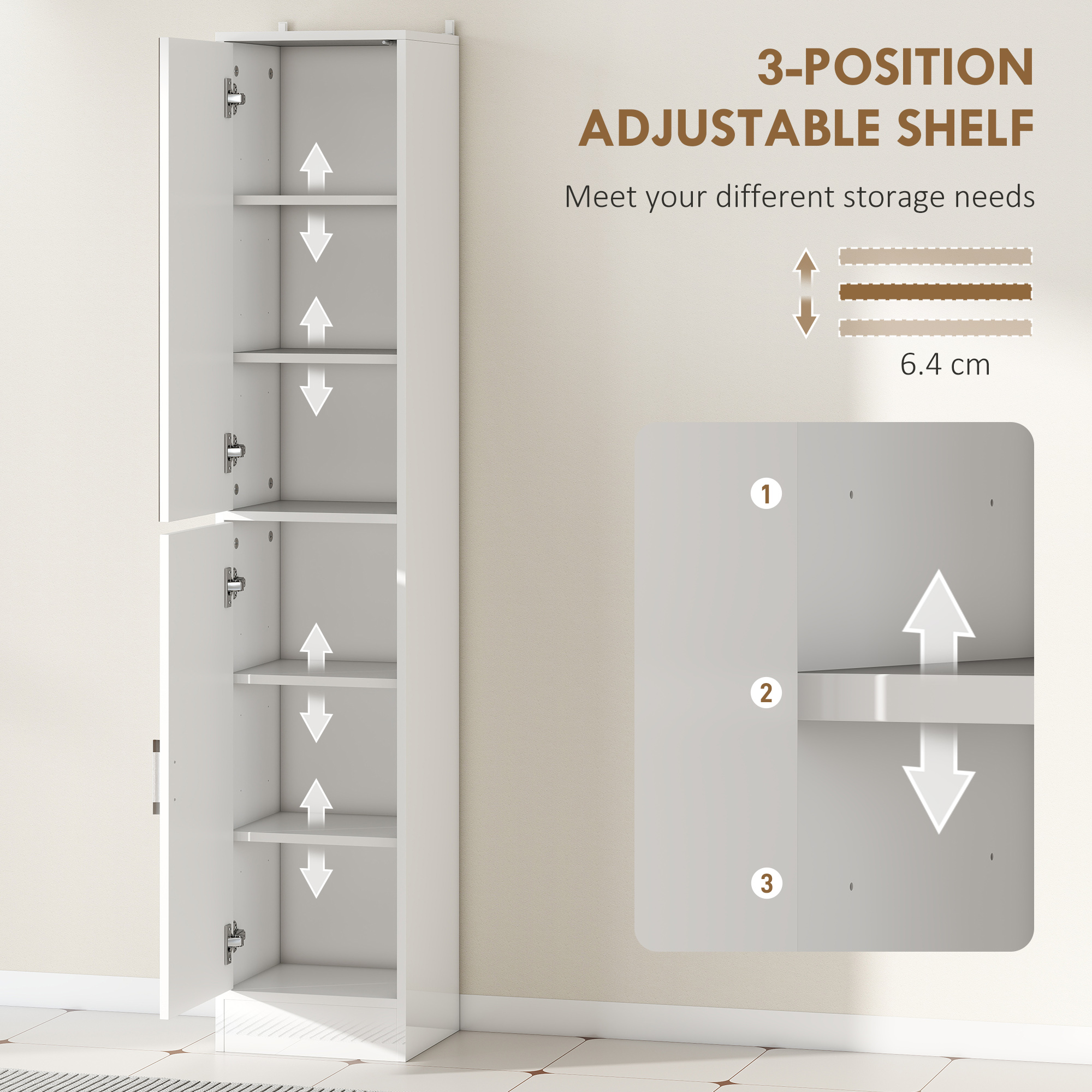 - Compact and tall cabinet perfectly fits in narrow bathroom spaces