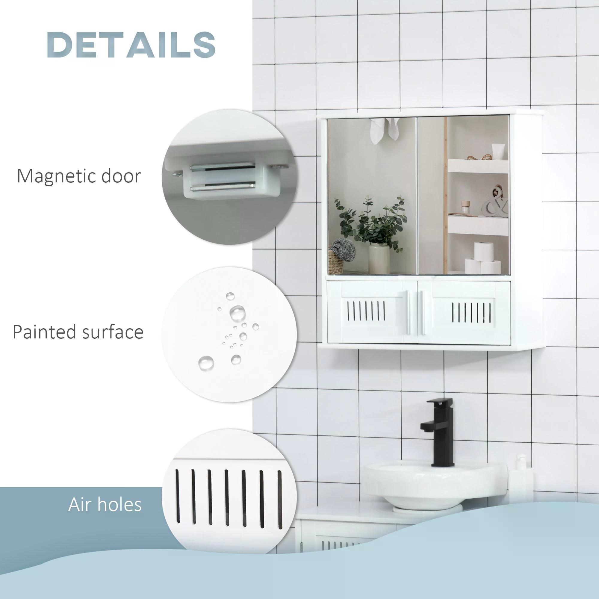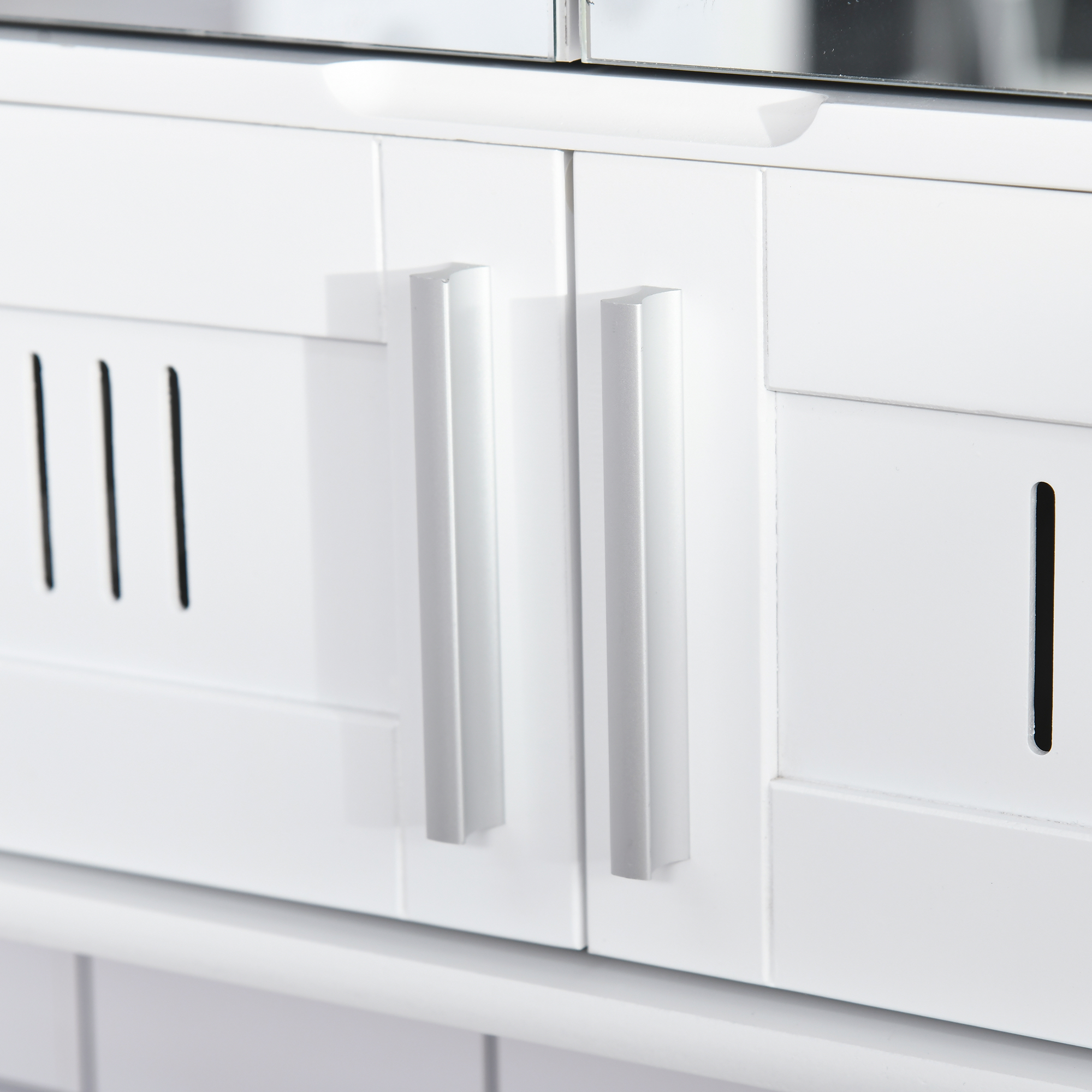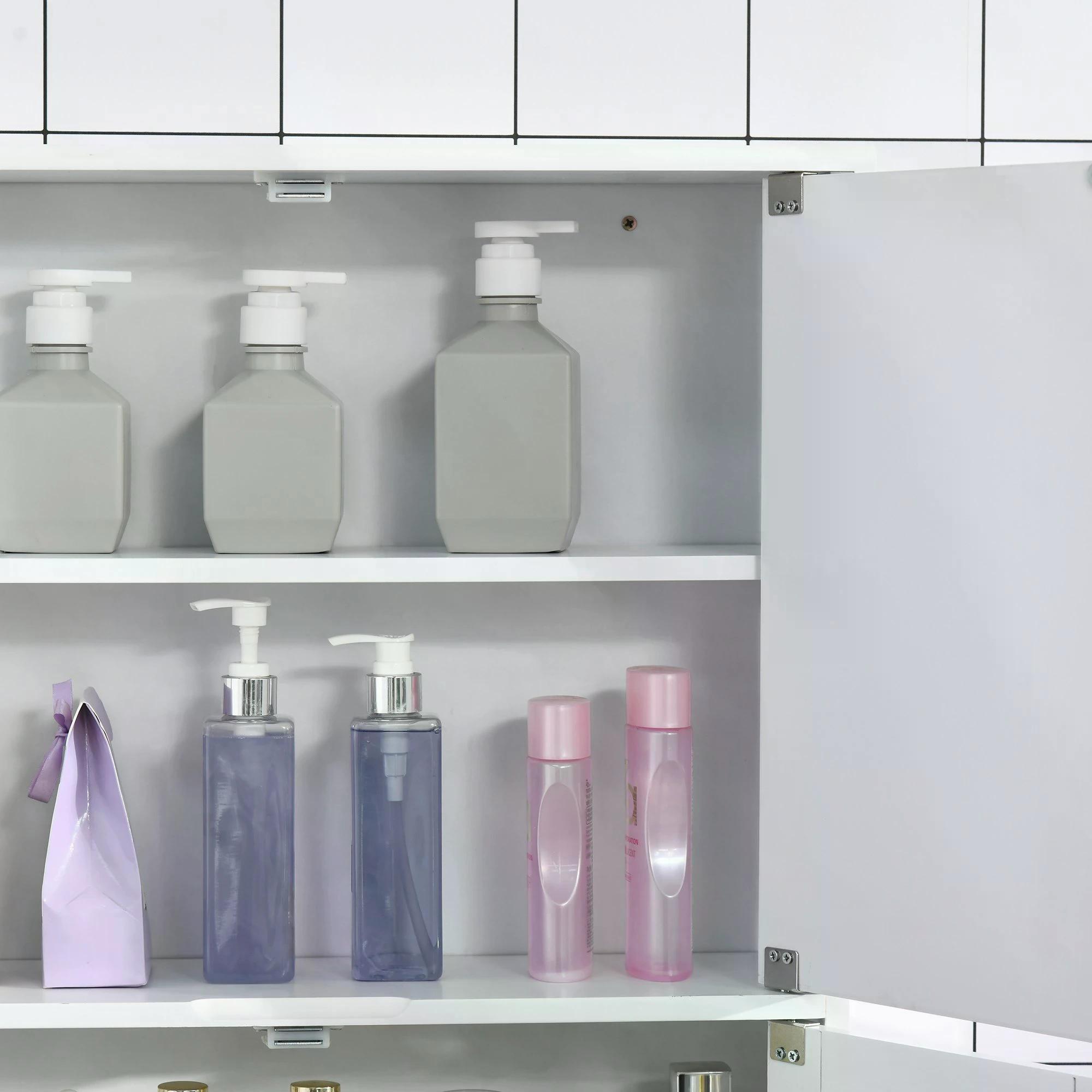 Creating stylish bathroom storage option has never been so easy - this kleankin medicine cabinet will do the trick instantly. Formed of a bottom shelf with small vented doors for airflow, with an two-compartment upper cabinet, there's plenty of space for keeping bottles, make-up, toiletries and everything in-between. Mirrored doors give you a place to see and get ready. The surface is painted for a smooth and easy-wipe finish. Setting it up is simple: simply fix on the wall securely and go.