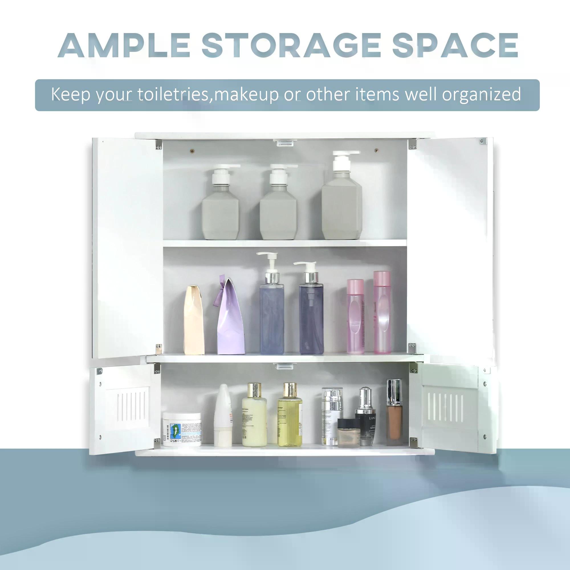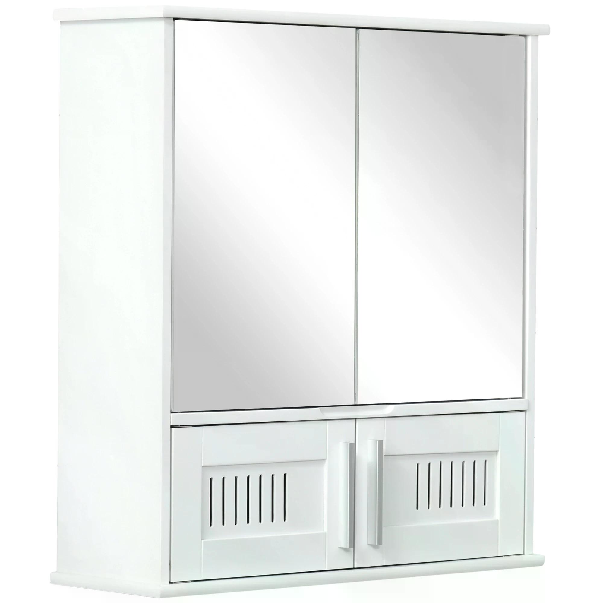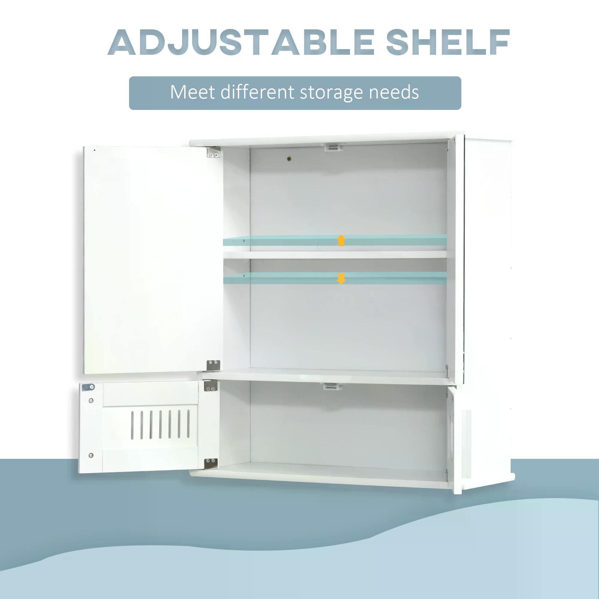 Creating stylish bathroom storage option has never been so easy - this kleankin medicine cabinet will do the trick instantly. Formed of a bottom shelf with small vented doors for airflow, with an two-compartment upper cabinet, there's plenty of space for keeping bottles, make-up, toiletries and everything in-between. Mirrored doors give you a place to see and get ready. The surface is painted for a smooth and easy-wipe finish. Setting it up is simple: simply fix on the wall securely and go.