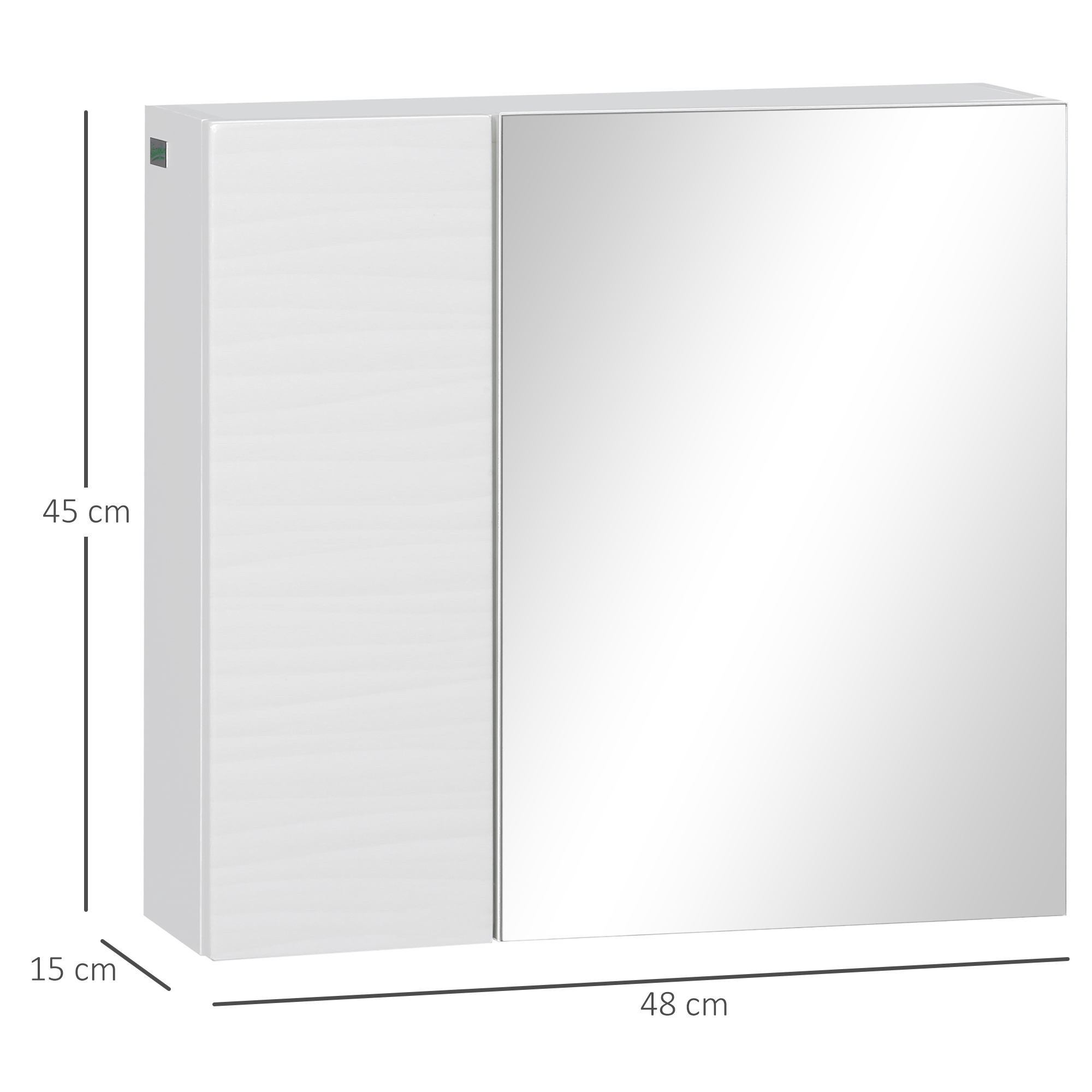 An easy way to keep your bathroom space clean and tidy: this kleankin bathroom mirror with shelf. With a large mirrored door outside, it's easy to see and get ready whenever you want. Inside, there's an adjustable shelf, giving you two storage areas; the shelf is adjustable to three different positions for more dedicated storage. Fix on the wall and transform your bathroom instantly with this small bathroom cabinet.