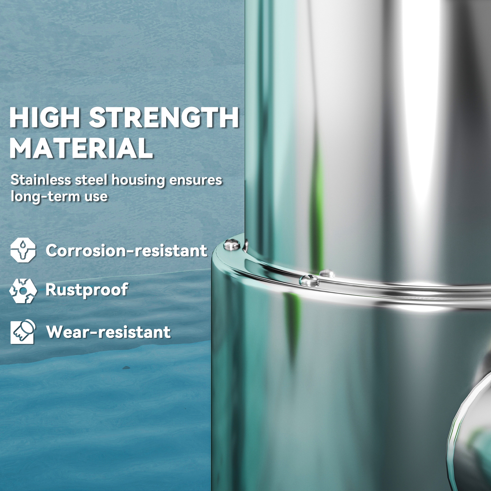 - Stainless steel housing provides corrosion resistance and durability