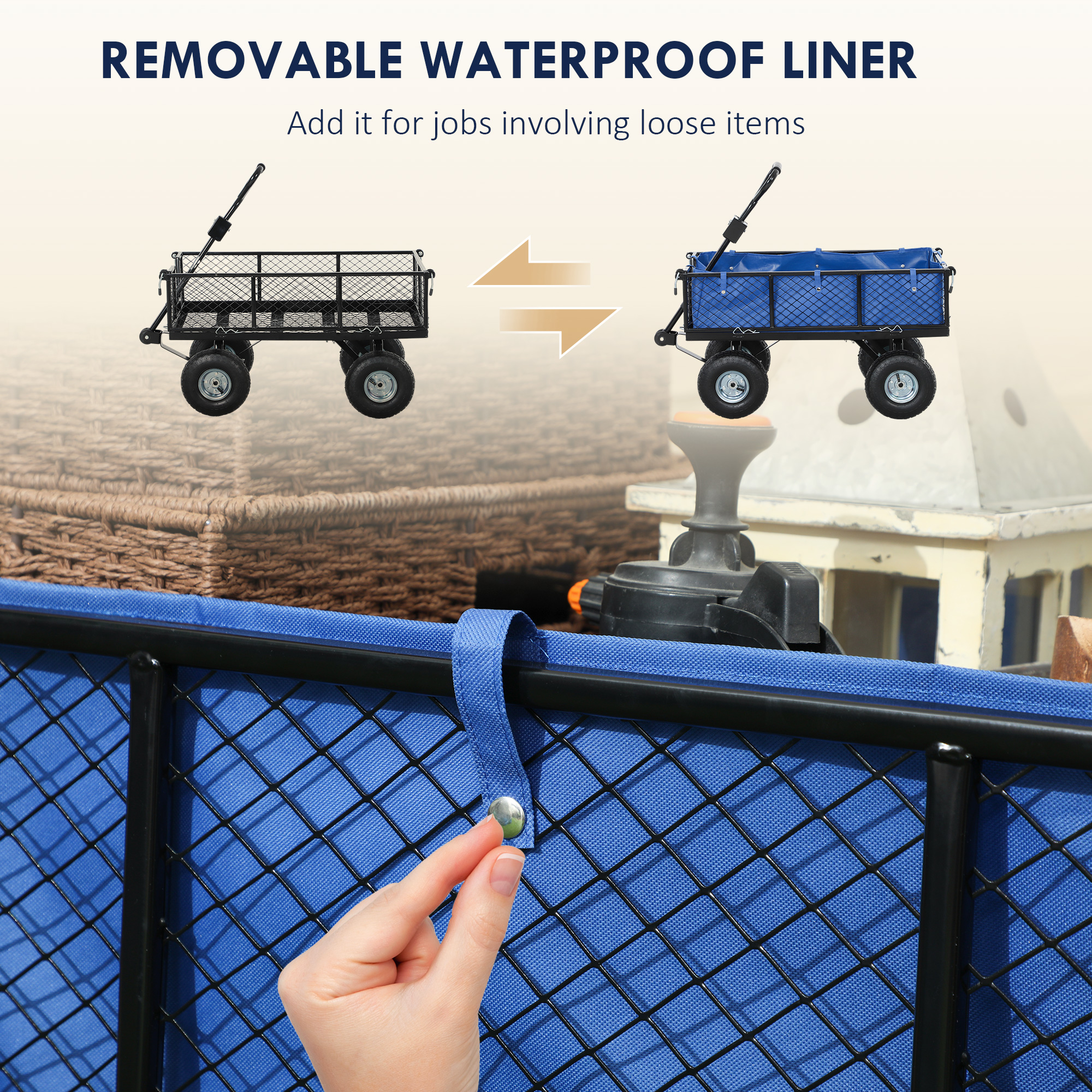 Whatever the gardening, camping or festival load, this Outsunny heavy duty trolley will see you through. The 114L capacity offers plenty of room, with the removable waterproof bag providing protection against outer weather. Made from steel, this is a strong piece, with removable sides to allow easy loading and unloading. Complete with pneumatic rubber tyres for smooth movement.