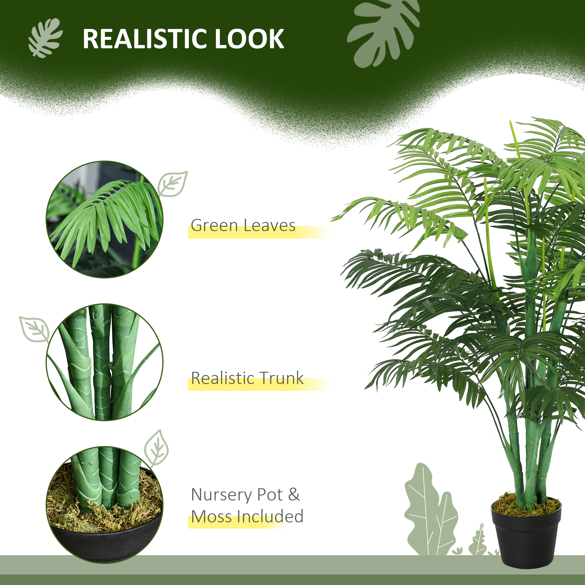 Bring beautiful greenery into your home, without the upkeep - pick this artificial tree, from Outsunny for a breath of life this season and beyond. Made from quality plastic for long life and crafted into an 18-leaf design, the indoor plant boasts a realistic colour and texture. The faux design means zero maintenance too, so the fake tree will keep looking the same even without any water. Finished with a cement-filled pot keep the potted plant stand proud where it stands.