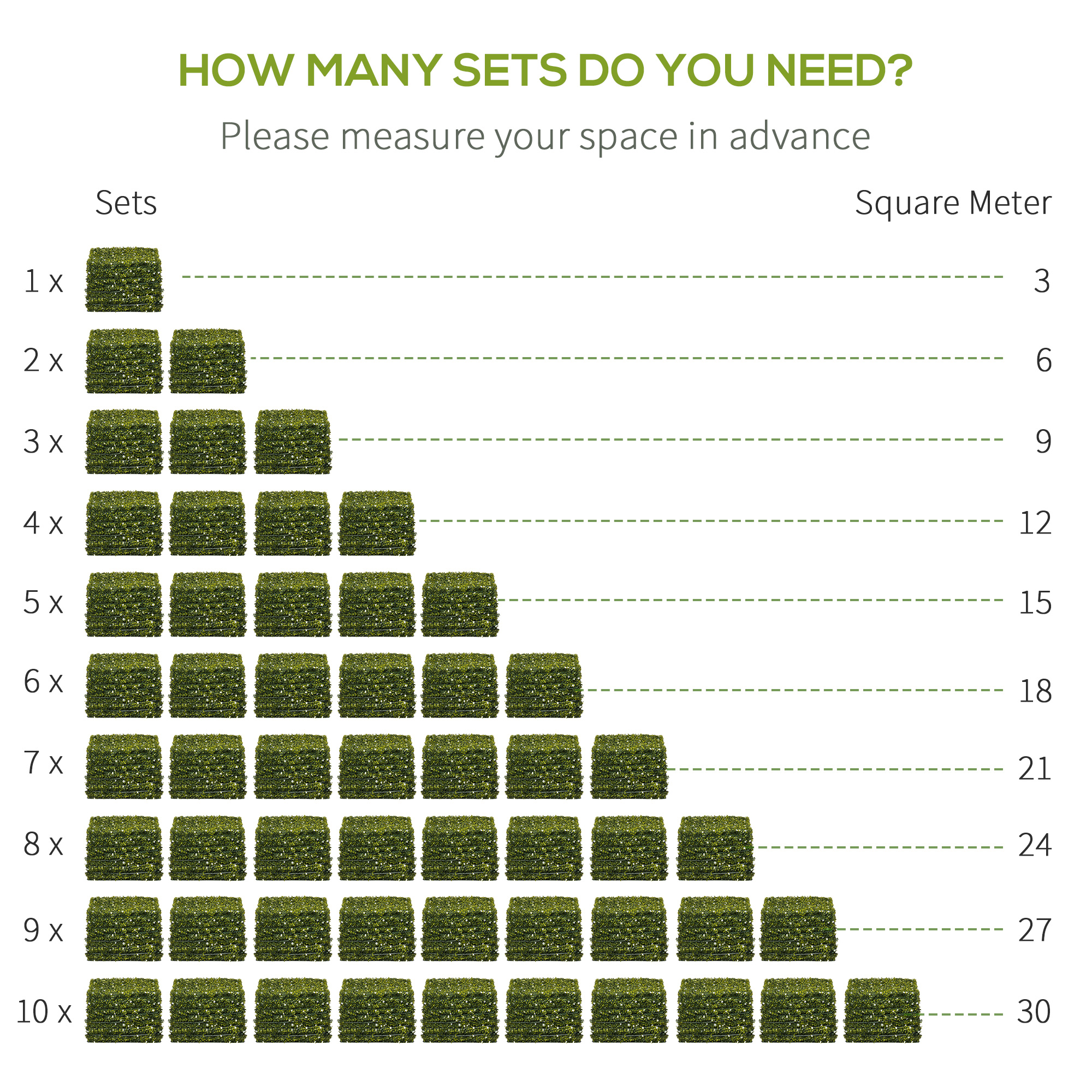 - 12 piece set, each decorative fence panel measures 50cm x 50cm, covers total 3 square meters